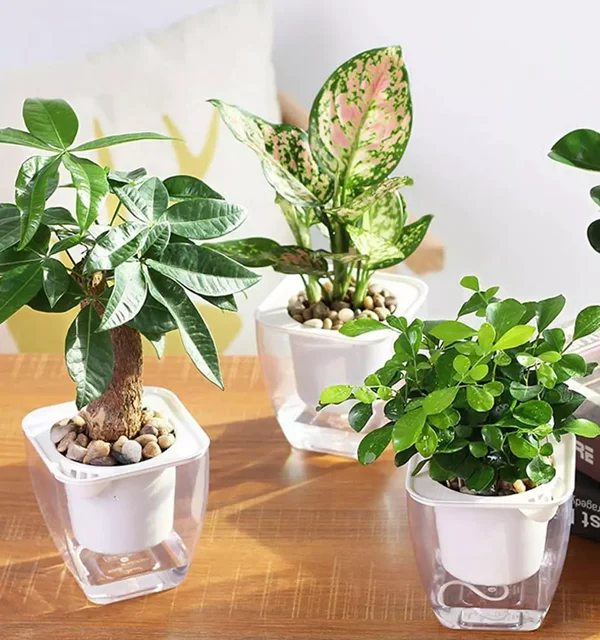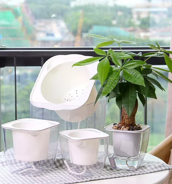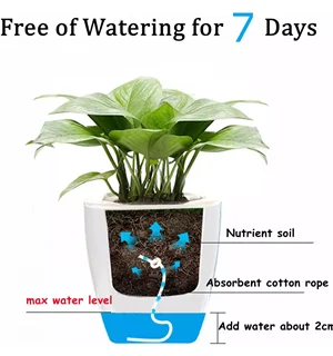 گلدان های خود آبیار دارای بخش توری در کف می باشند که دارای ارتفاع مناسبی با مخزن آب می باشد. کافیست خاک و گیاه مدنظرتان را در بخش سفید گلدان قرار دهید و مقدار مناسب آب را قرار دهید تا ذره ذره آب به خاک نفوذ کند و در مدت طولانی دیگر نیاز به آبیاری های مداوم و طاقت فرسا نباشد. مناسب گیاهانی که به خاک مرطوب نیازدارند و با رطوبت رشد خوبی خواهند داشت.