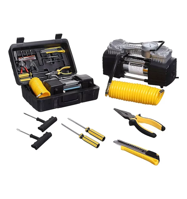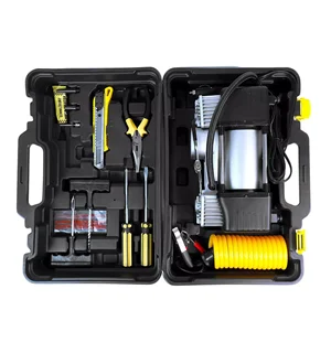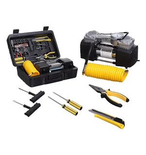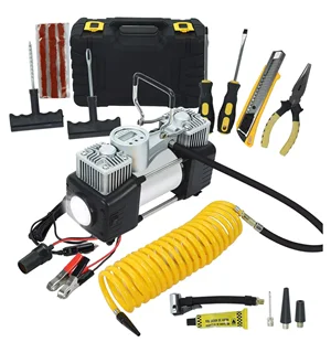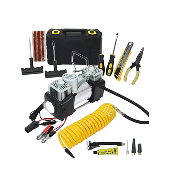 46268 پمپ باد فندکی دو سیلندر همراه با لوازم پنچرگیری کامل