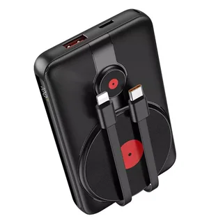 1 عدد USB و 1 عدد Type C و یک عدد کابل متصل به پاوربانک لایتنینگ و تایپ سی