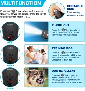 دارای سه حالت کاری چراغ قوه، آموزش سگ یا نگه داشتن سگها در فاصله دور