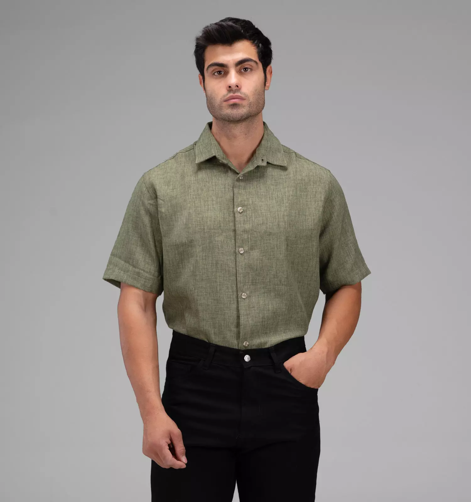 48316 پیراهن لینن مردانه آستین کوتاه ساده