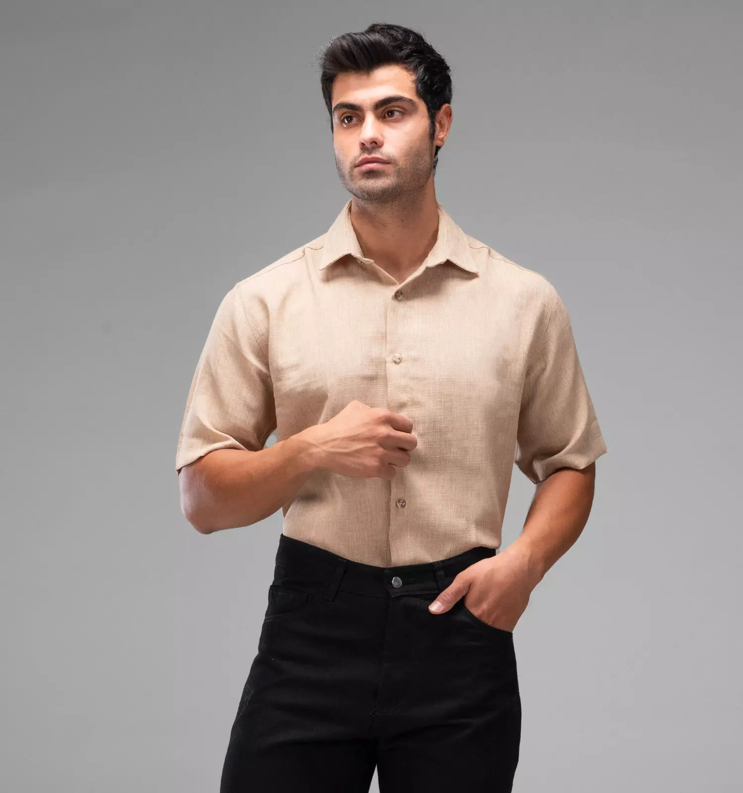 48317 پیراهن لینن مردانه آستین کوتاه ساده