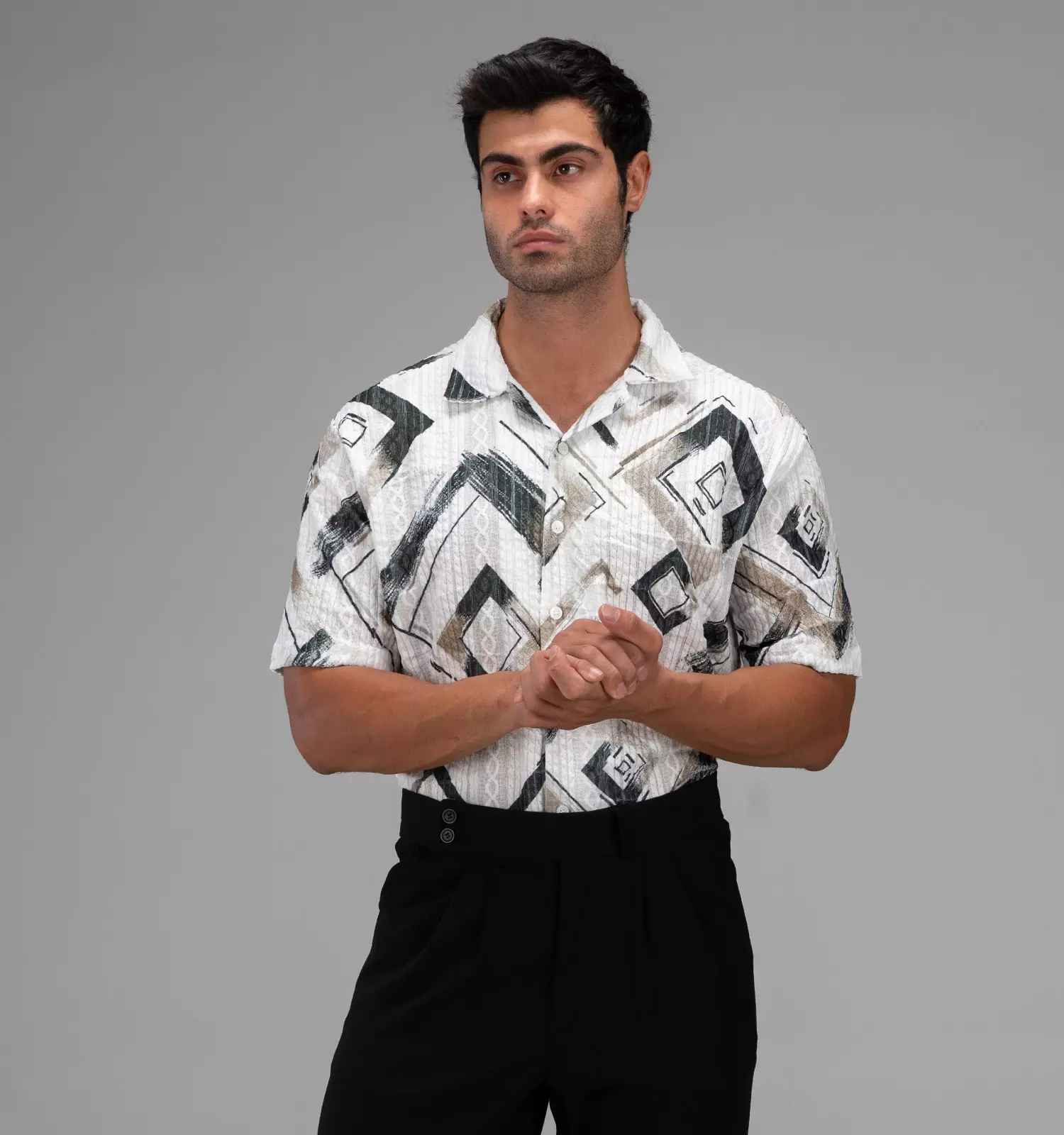 48320 پیراهن اسپرت نخ پنبه مردانه آستین کوتاه طرح دار