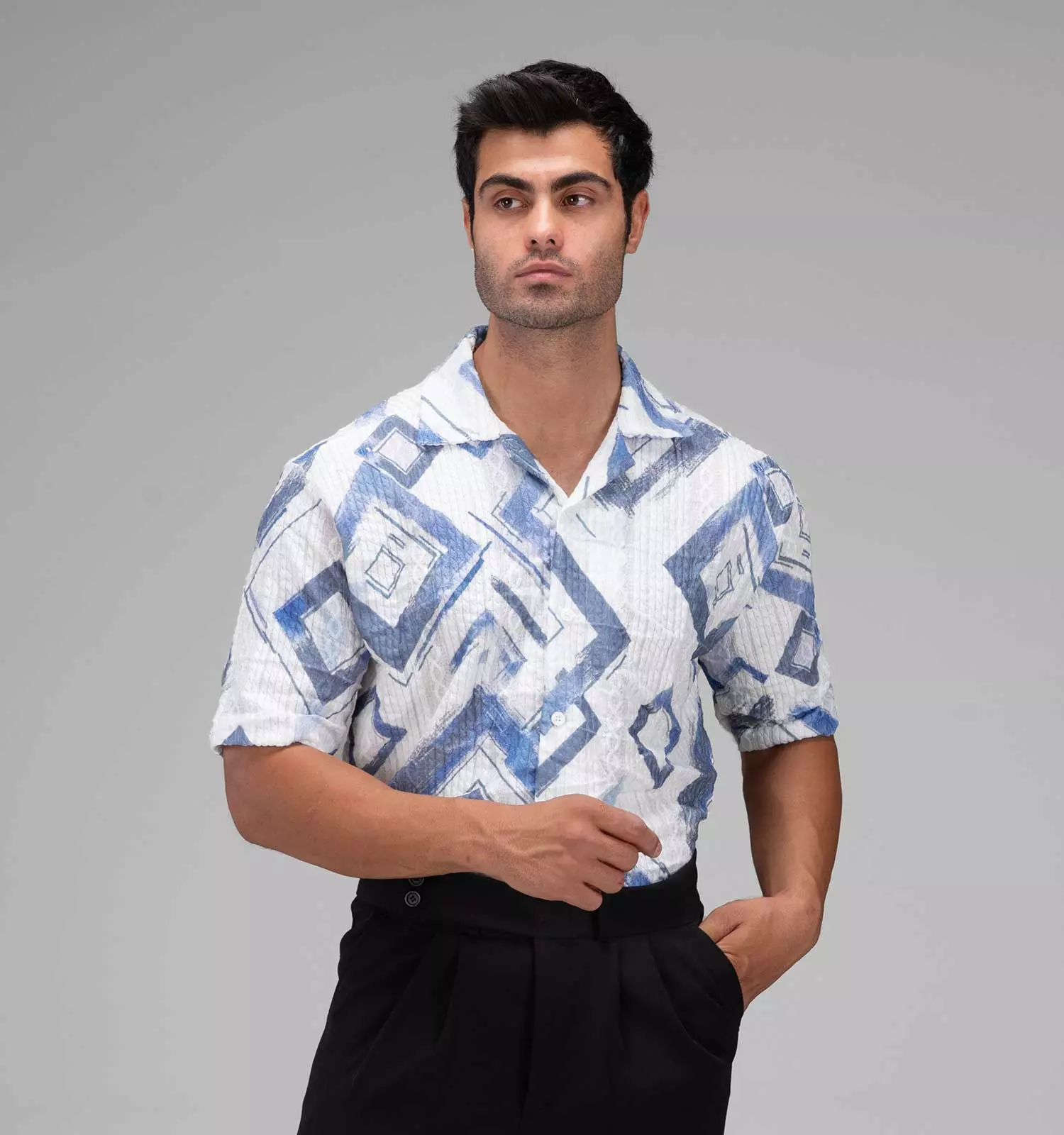 48321 پیراهن اسپرت نخ پنبه مردانه آستین کوتاه طرح دار