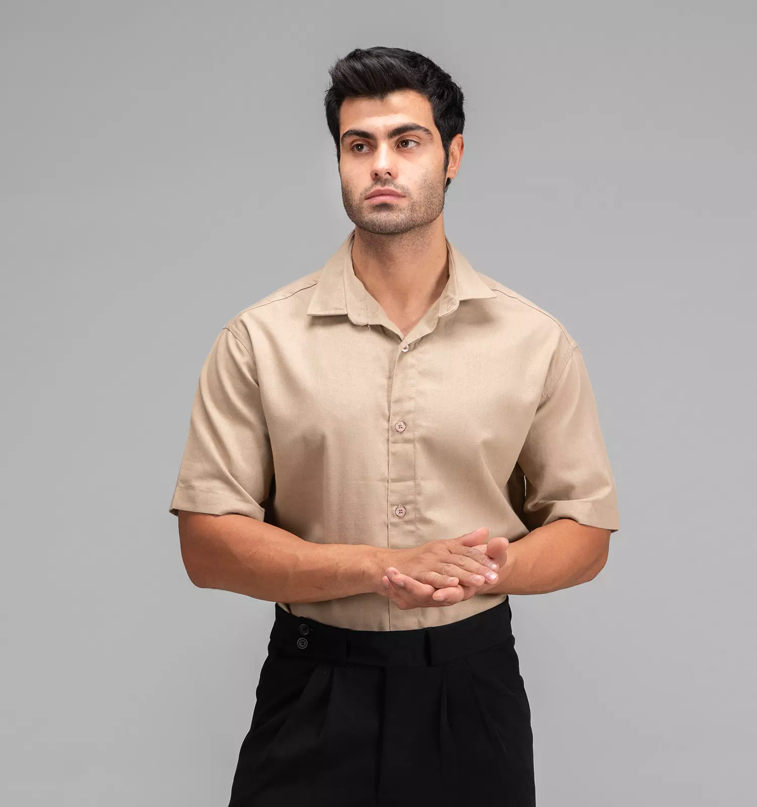 48339 پیراهن اسپرت لنین مردانه آستین کوتاه ساده