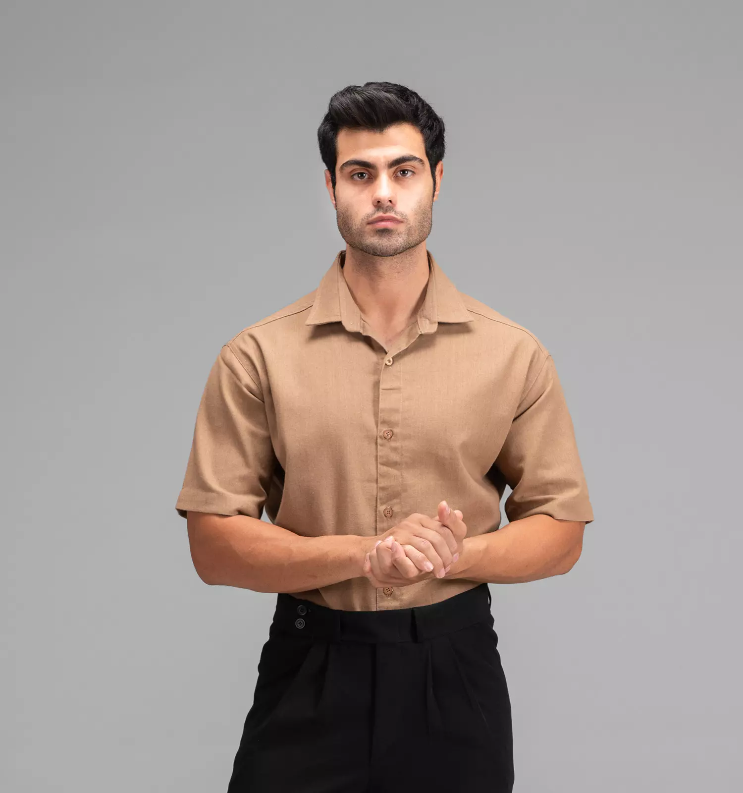 48341 پیراهن اسپرت لنین مردانه آستین کوتاه ساده