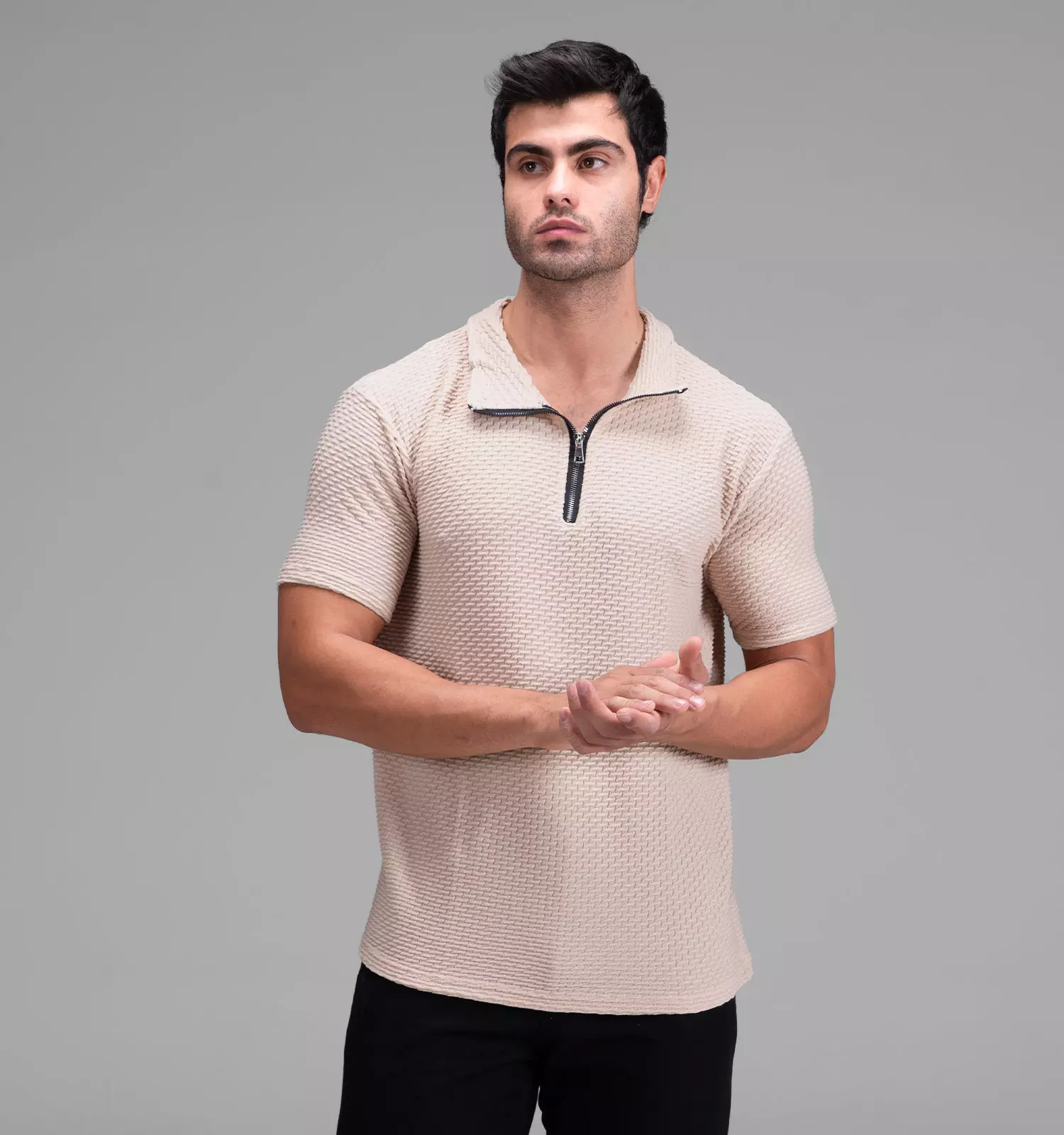 48346 تیشرت یقه دار نیم زیپ مردانه مراکشی ساده
