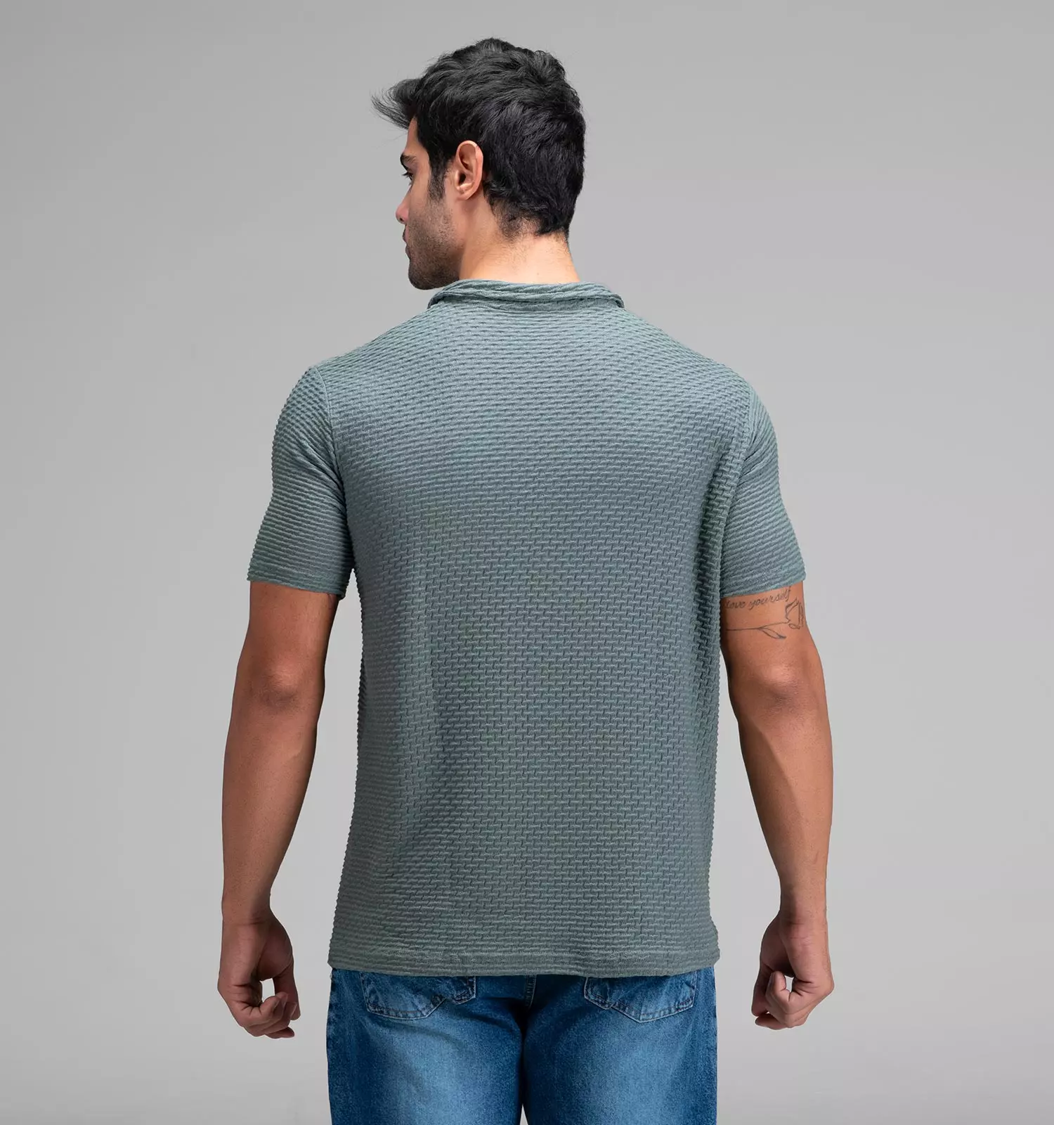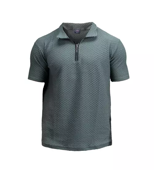48349 تیشرت یقه دار نیم زیپ مردانه مراکشی ساده