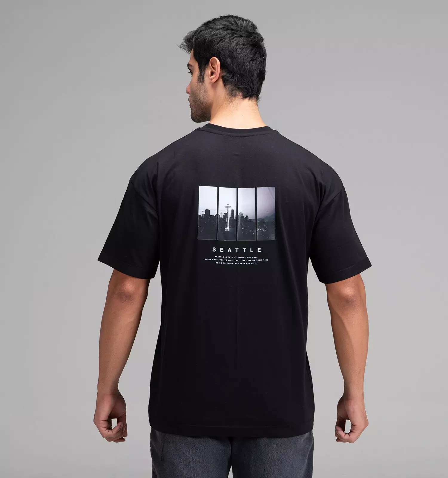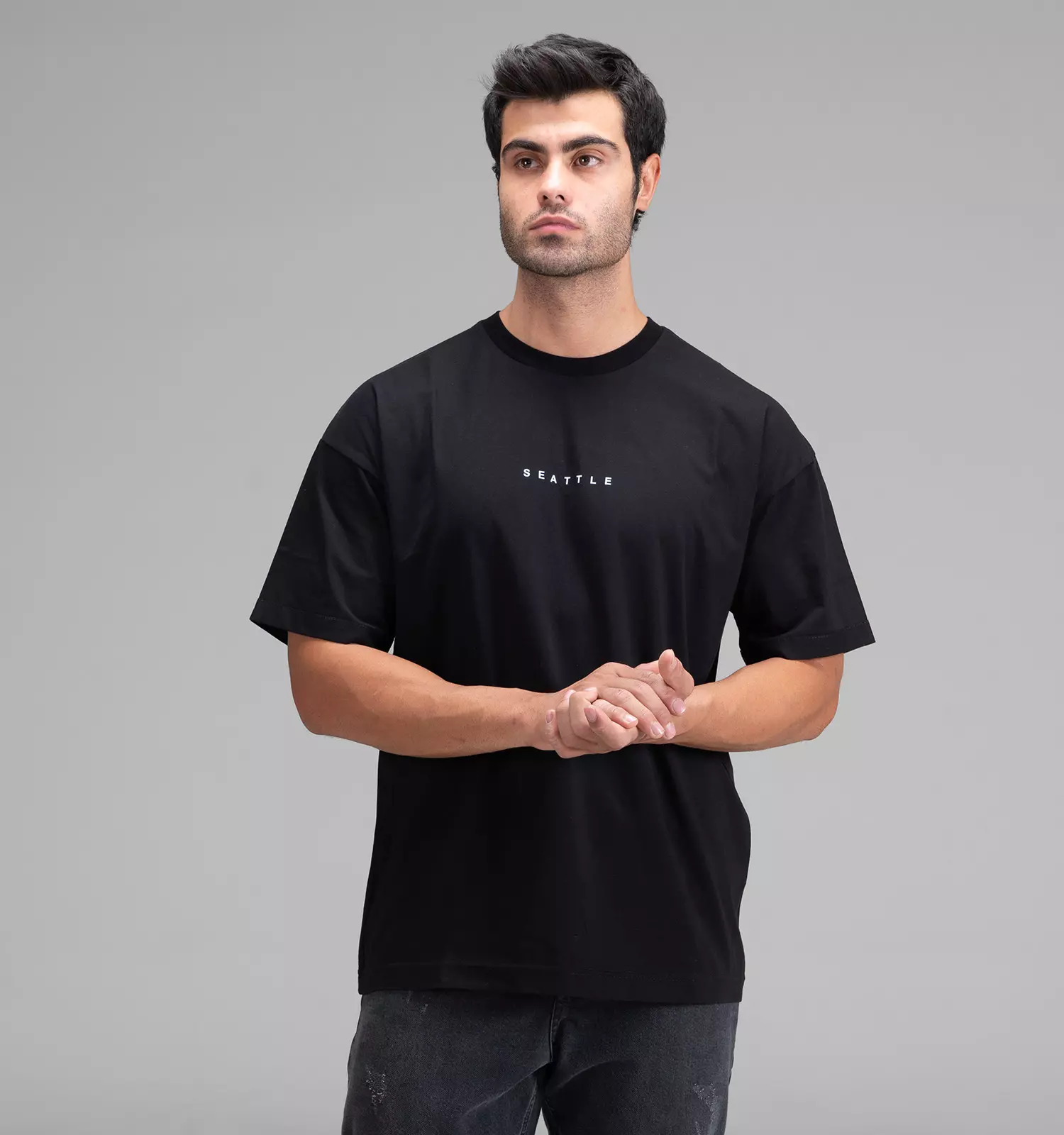 48350 تیشرت یقه گرد مردانه مشکی نخ پنبه طرح دار