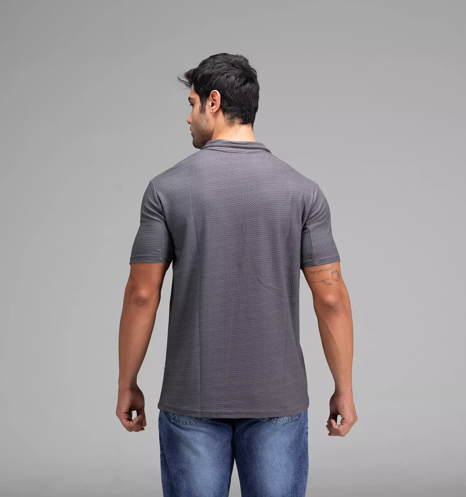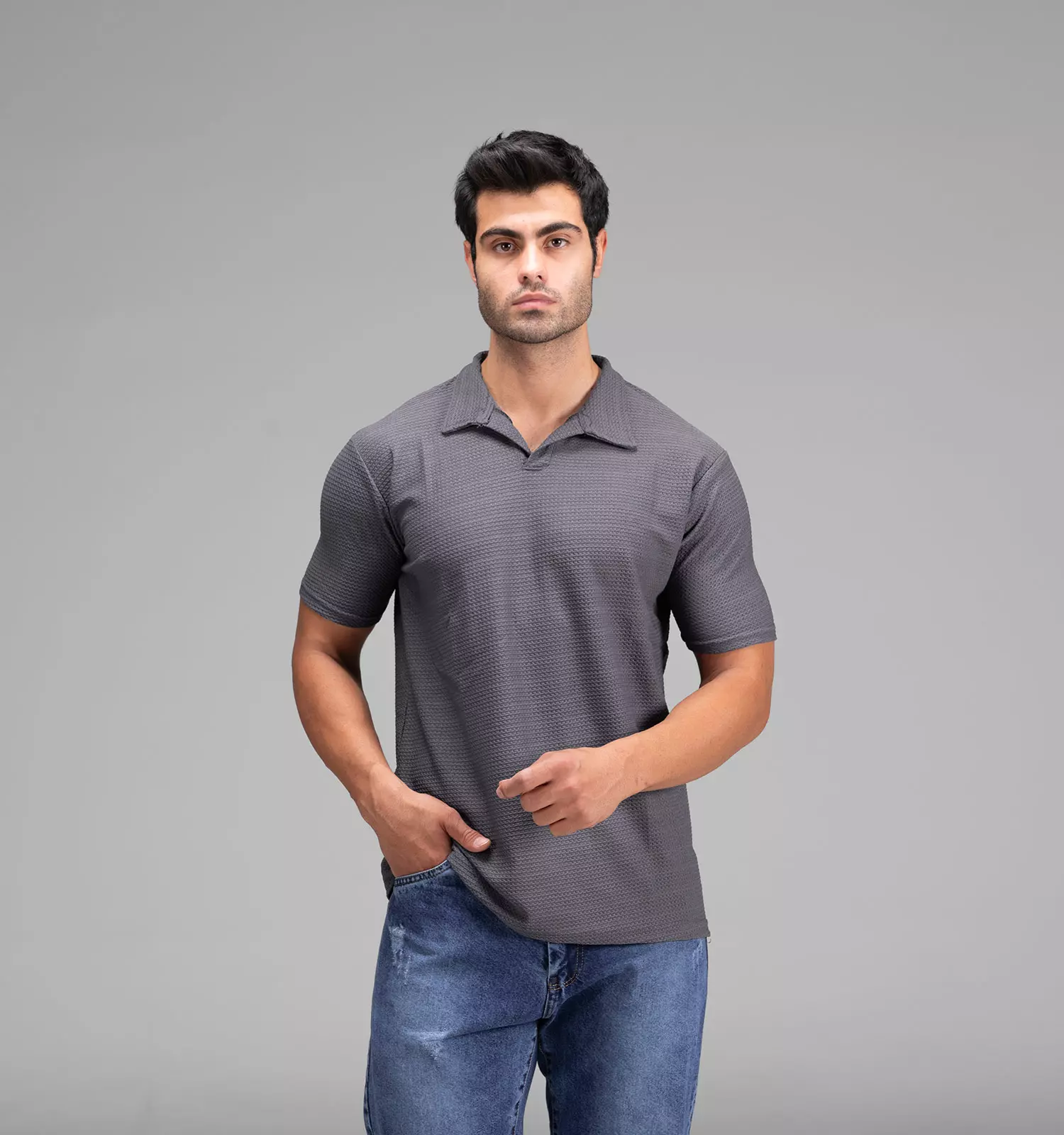 48353 تیشرت یقه دار مردانه طوسی مراکشی ساده