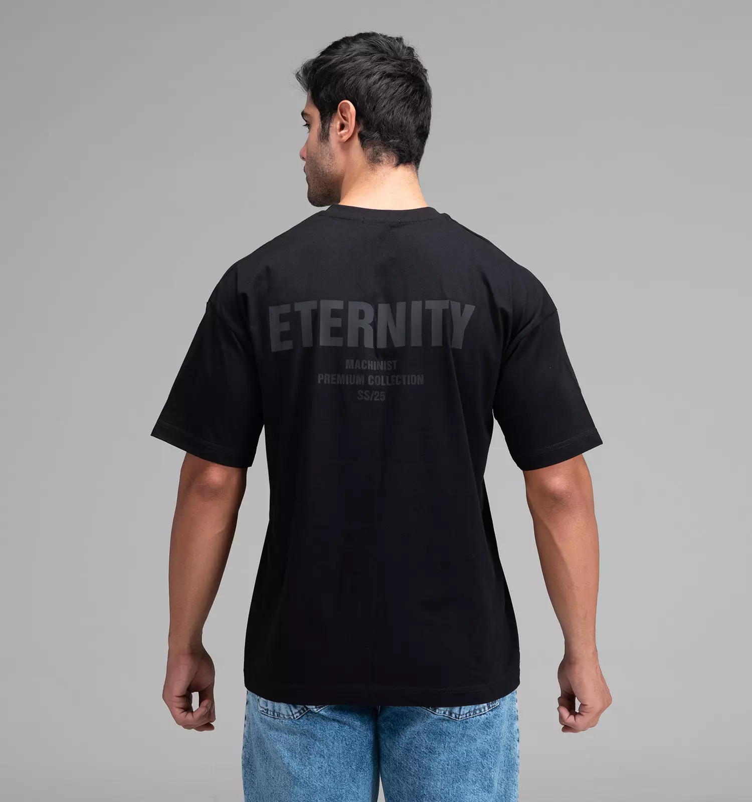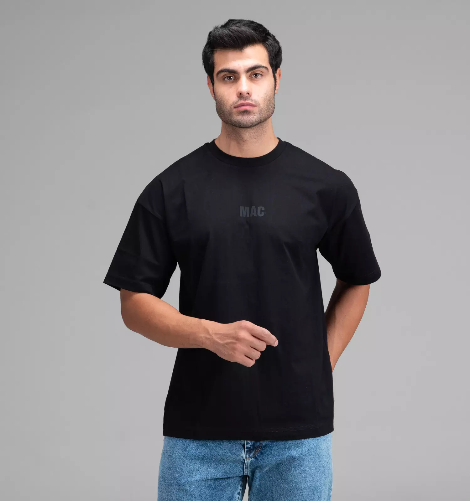 48362 تیشرت یقه گرد مردانه مشکی نخ پنبه طرح دار