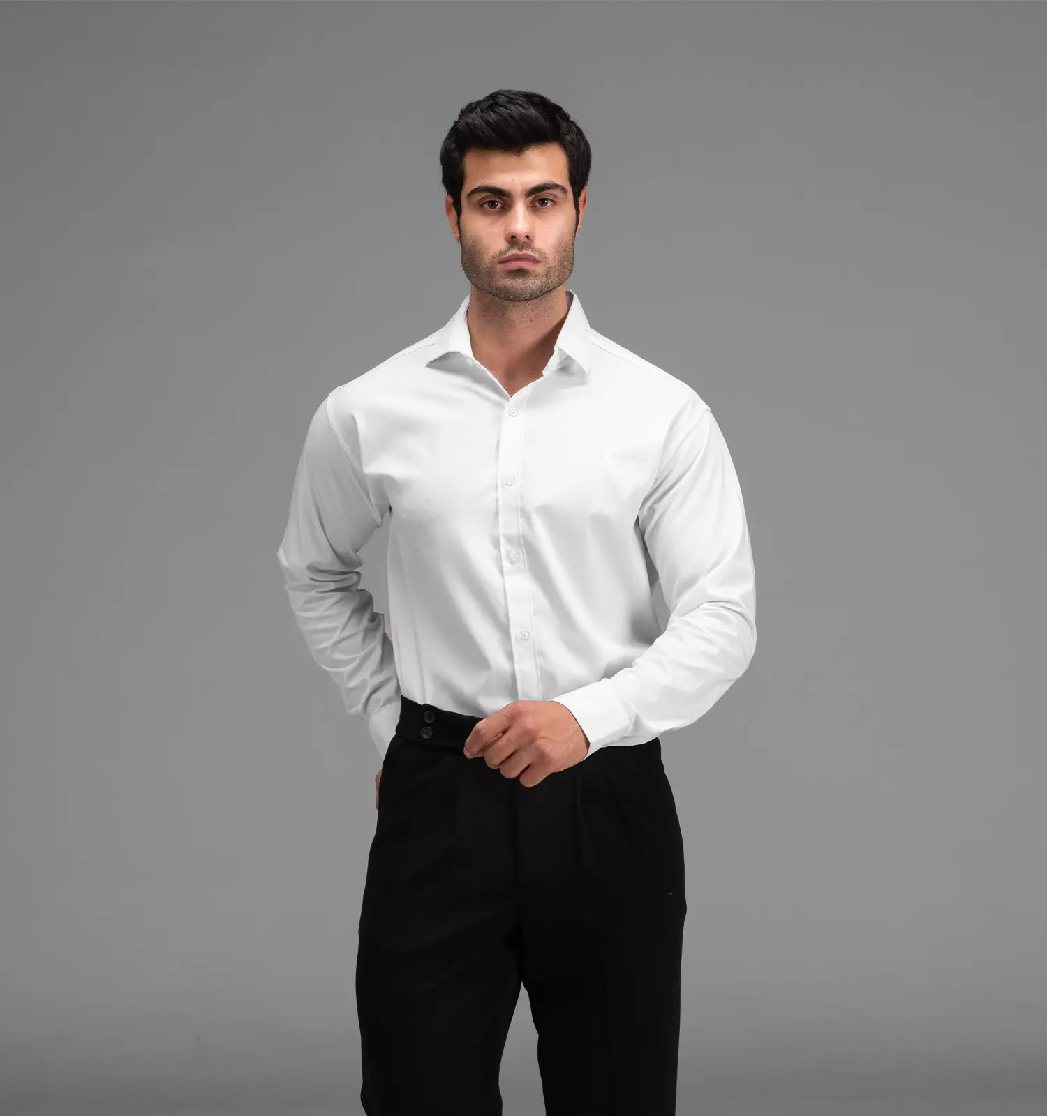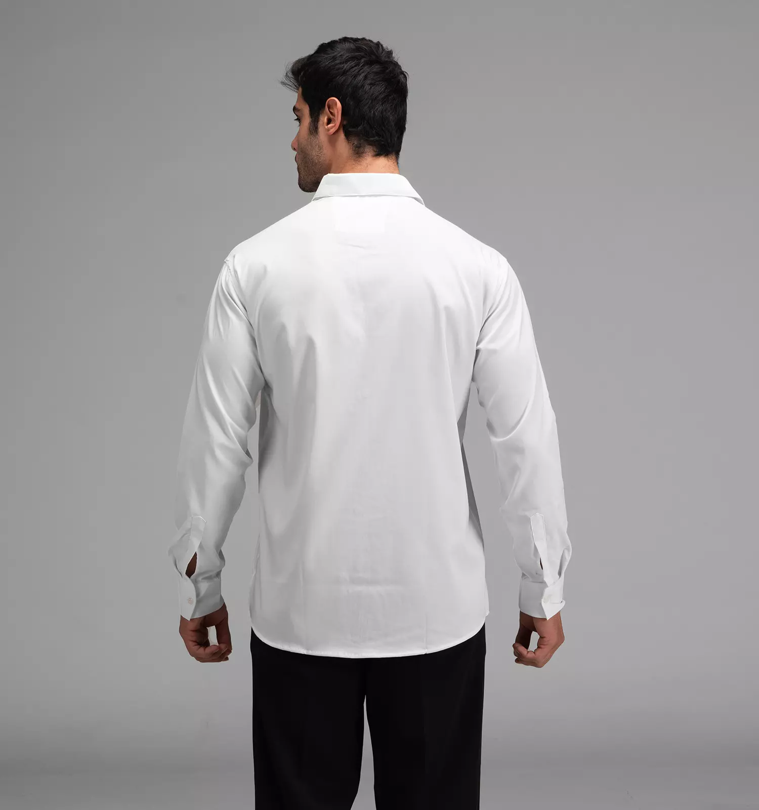 48383 پیراهن نخی مردانه آستین بلند ساده سفید