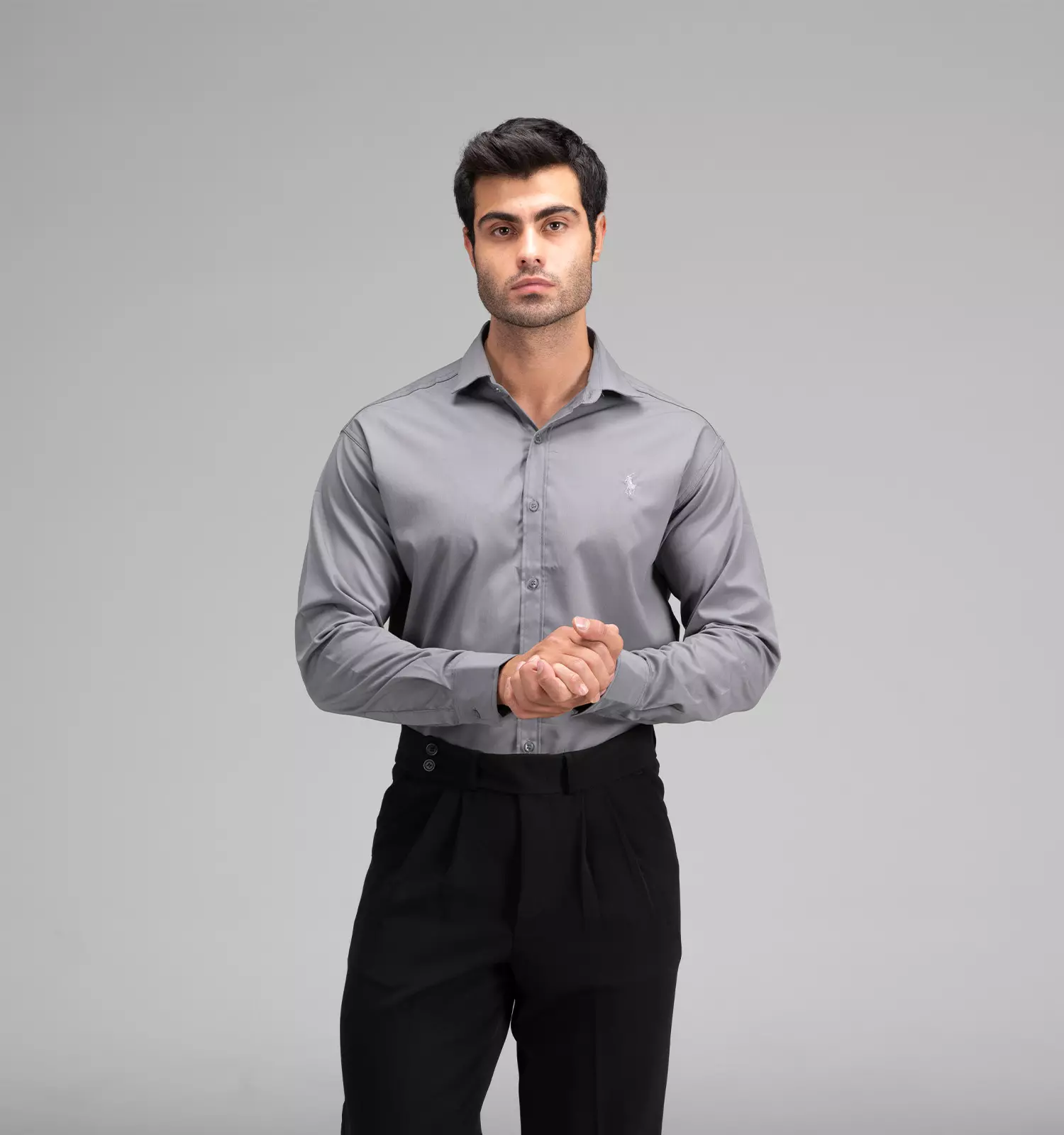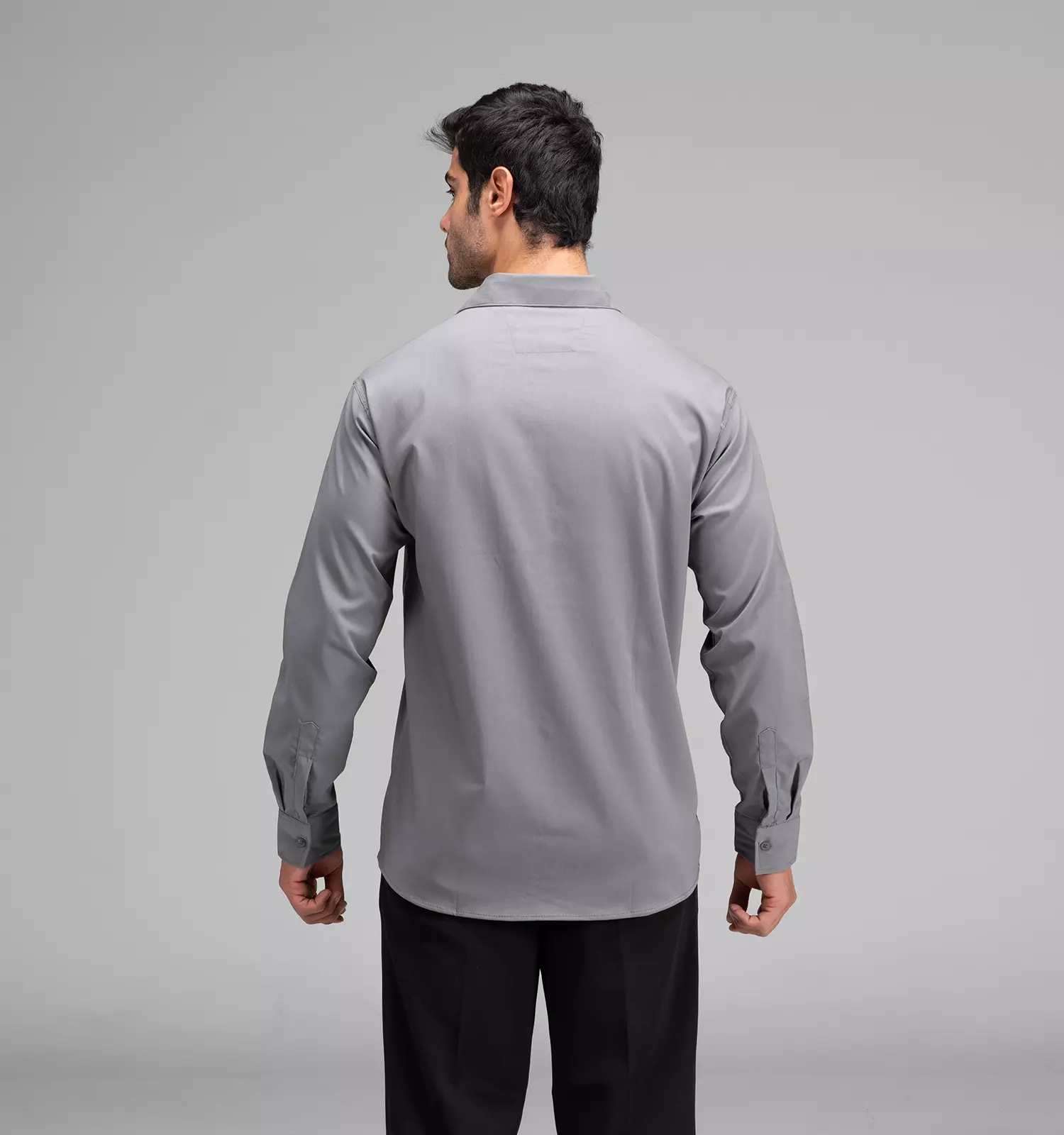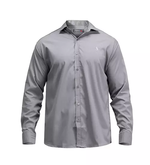 48384 پیراهن نخی مردانه آستین بلند ساده طوسی