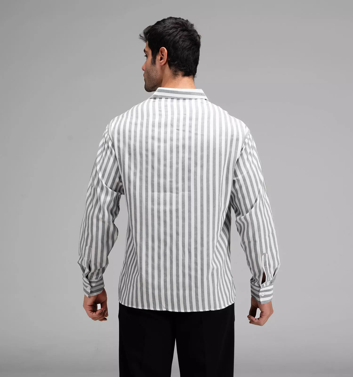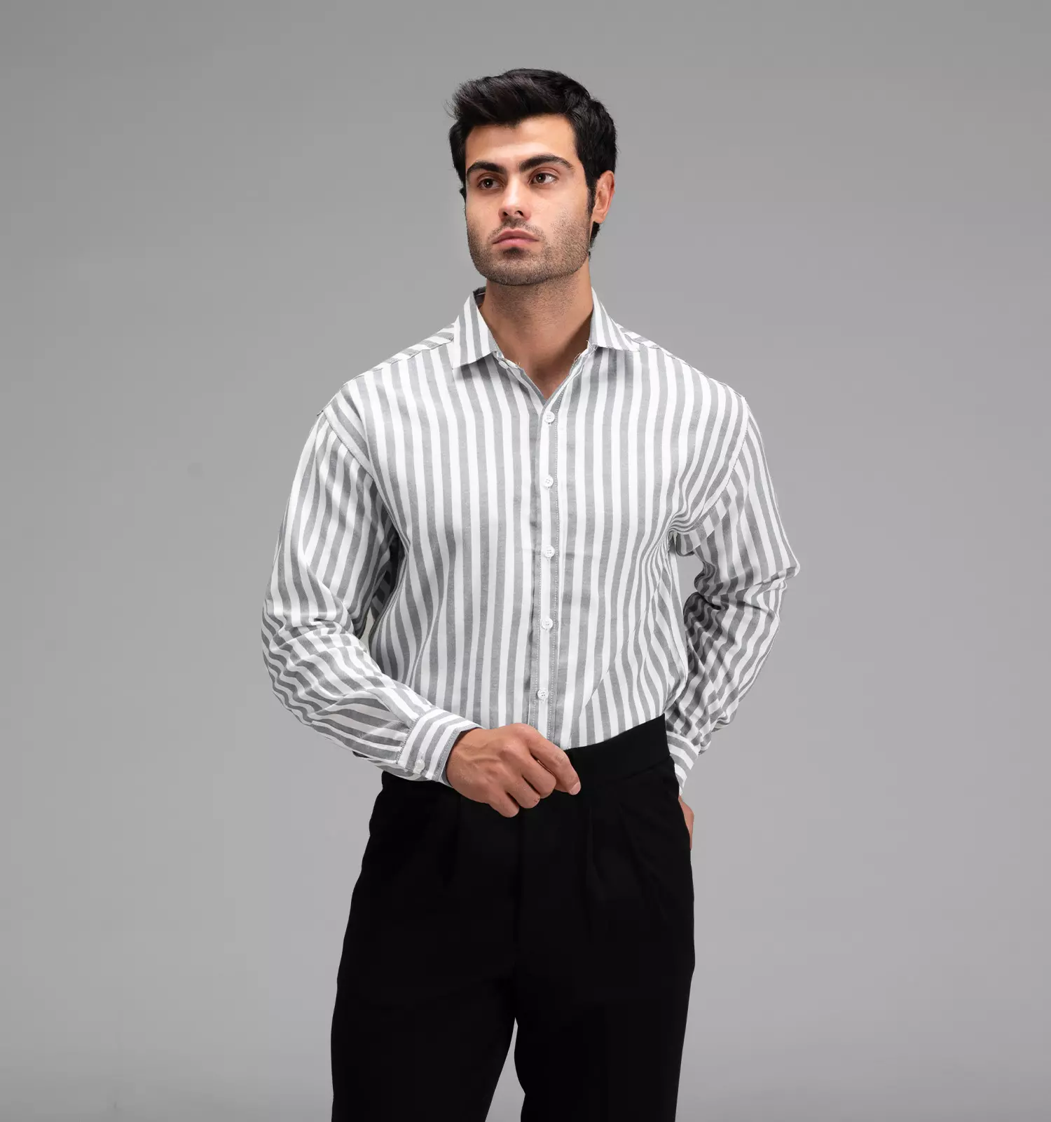 48387 پیراهن اسپرت نخ پنبه مردانه آستین بلند راه راه