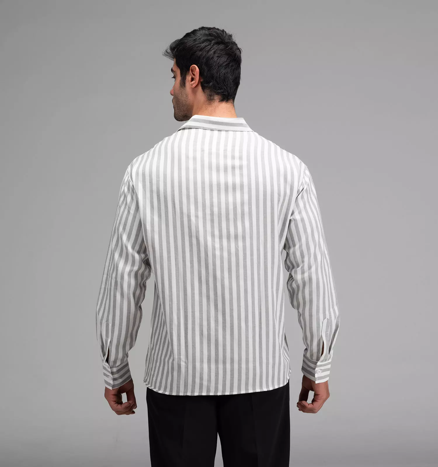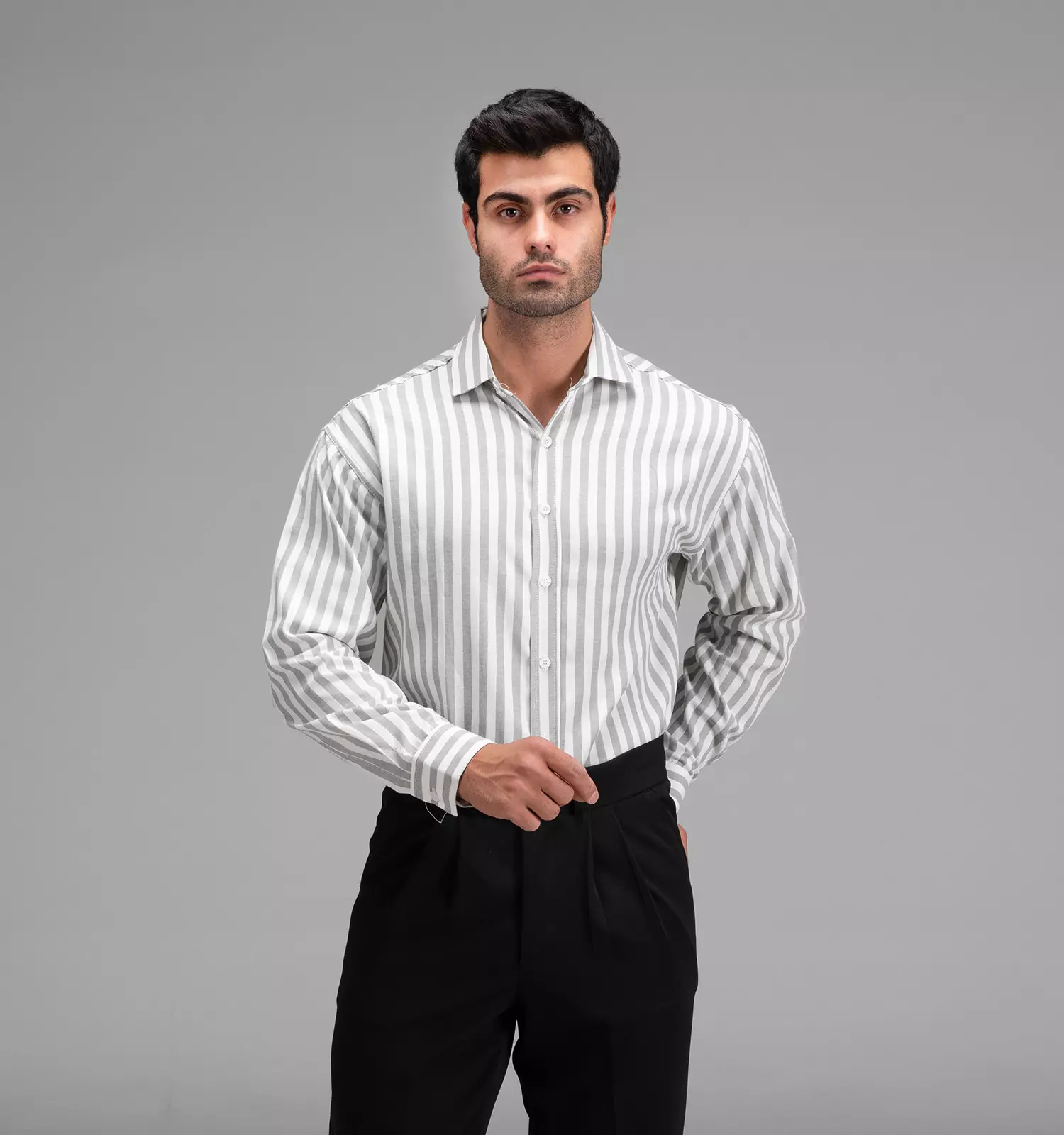 48388 پیراهن اسپرت نخ پنبه مردانه آستین بلند راه راه