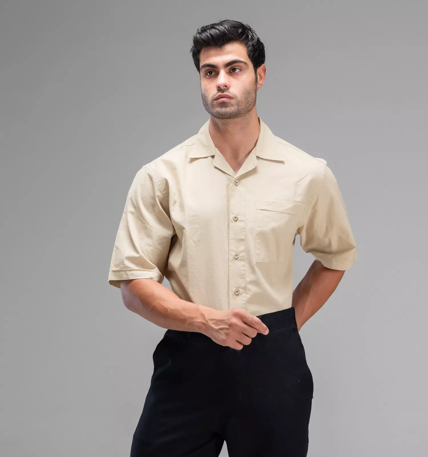 48481 پیراهن اسپرت لینن مردانه آستین کوتاه ساده