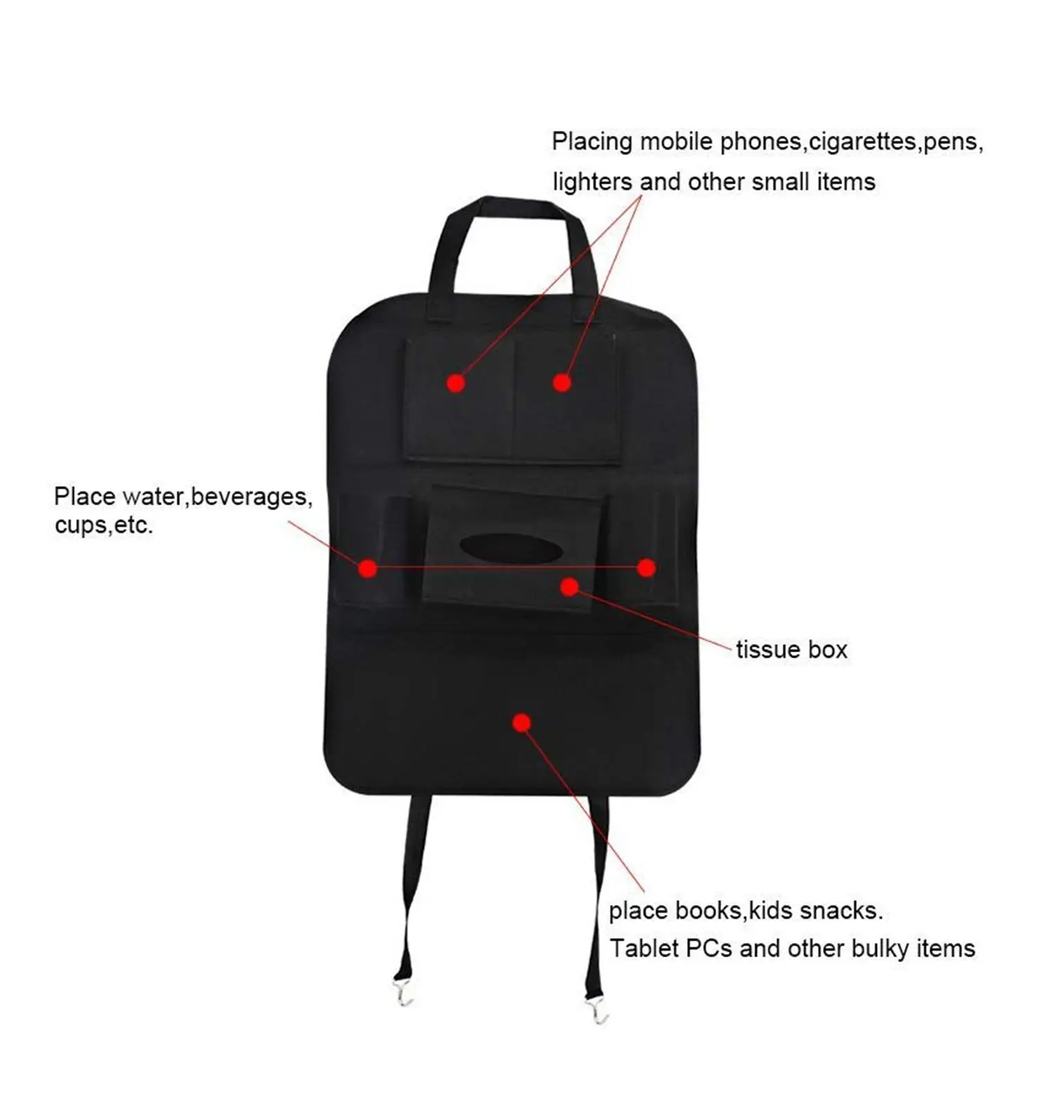 خیلی کاربردیه! همه وسایل مثل شارژر، بطری آب، دستمال و خوراکیها رو منظم توش جا میدم. دیگه صندلی عقب همیشه مرتبِ 👌