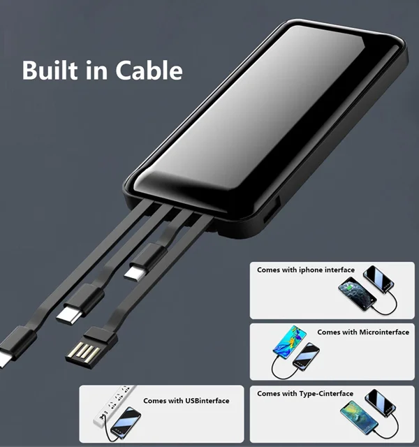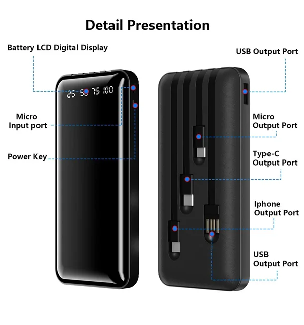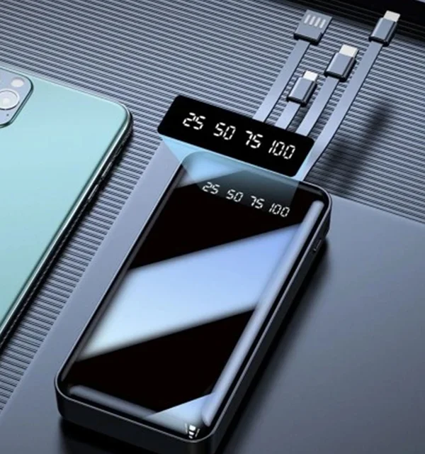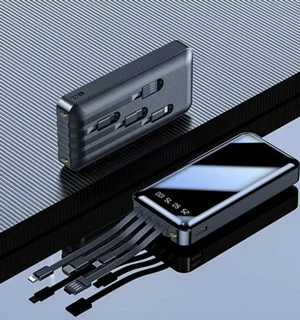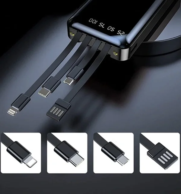 دارای 4 عدد کابل .تایپ سی .میکرو .لایتینگ .usb بر روی خود پاوربانک