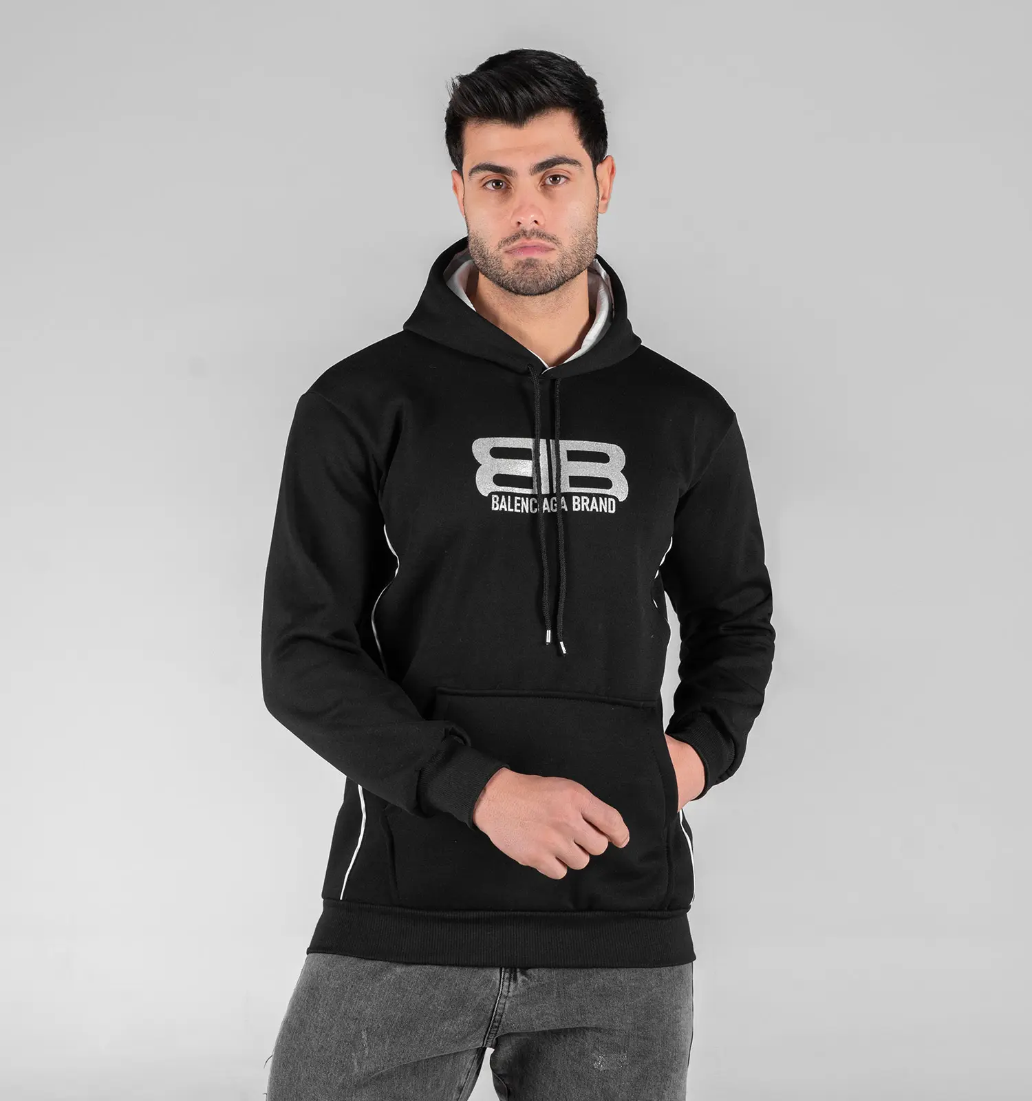 48700 هودی مردانه کلاه دار مشکی طرح دار Balenciaga