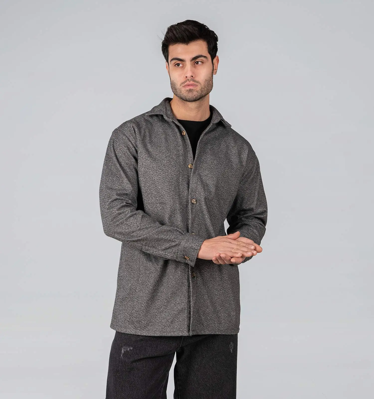 48782 پیراهن اسپرت پشمی مردانه آستین بلند ساده