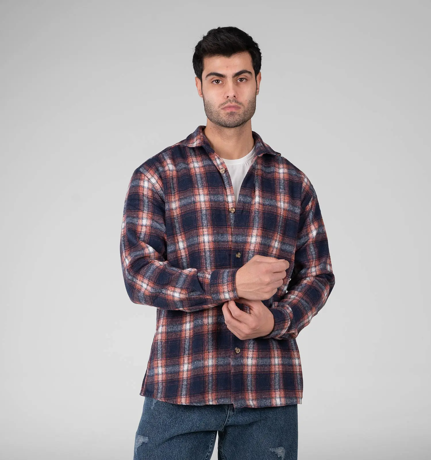 48790 پیراهن اسپرت پشمی مردانه آستین بلند چهارخانه