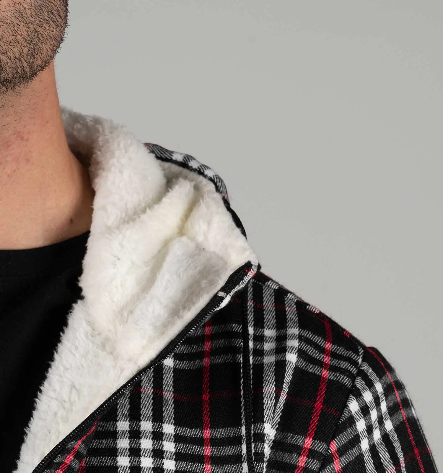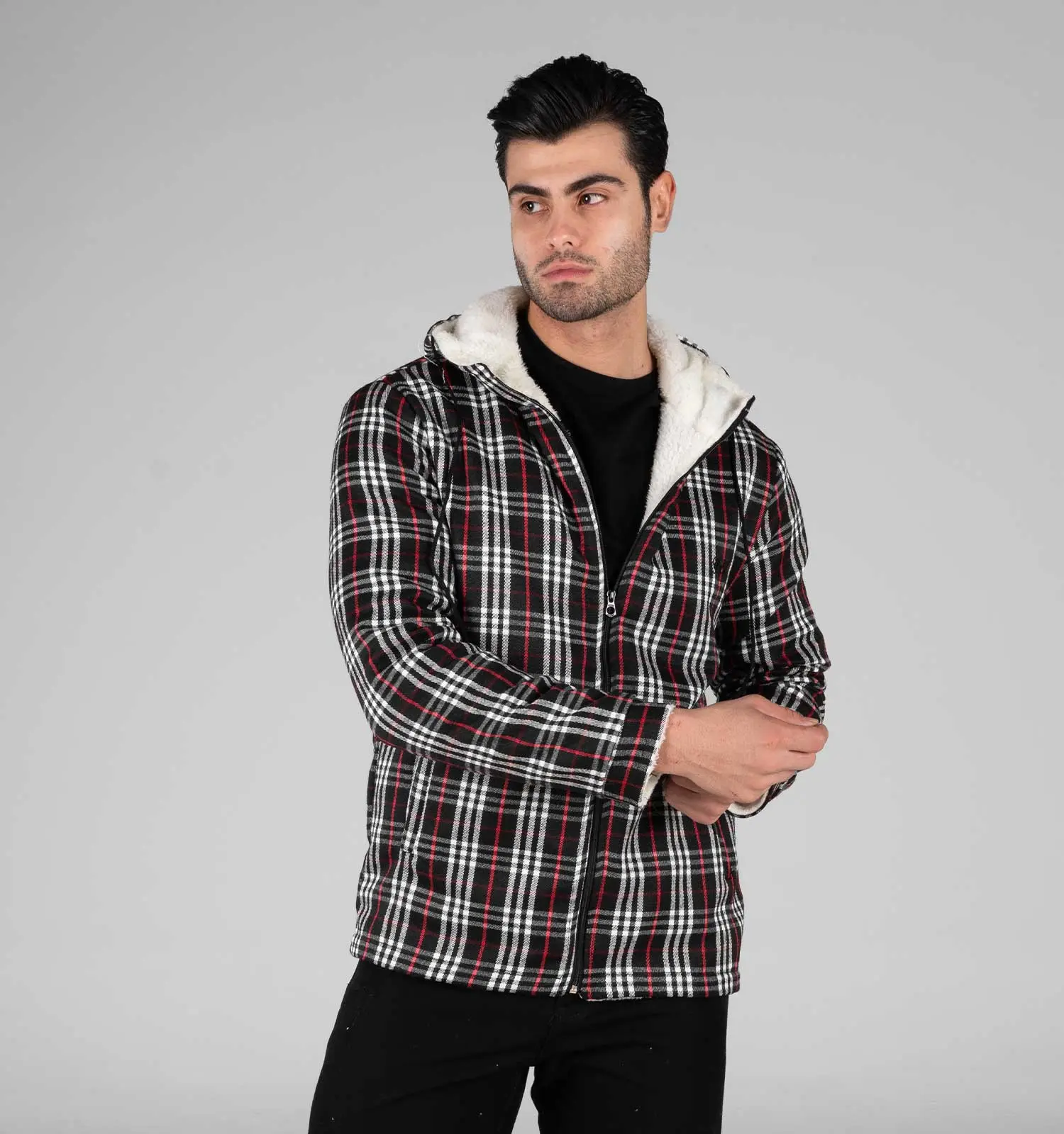 49008 سویشرت پشمی مردانه چهار خونه کلاه دار