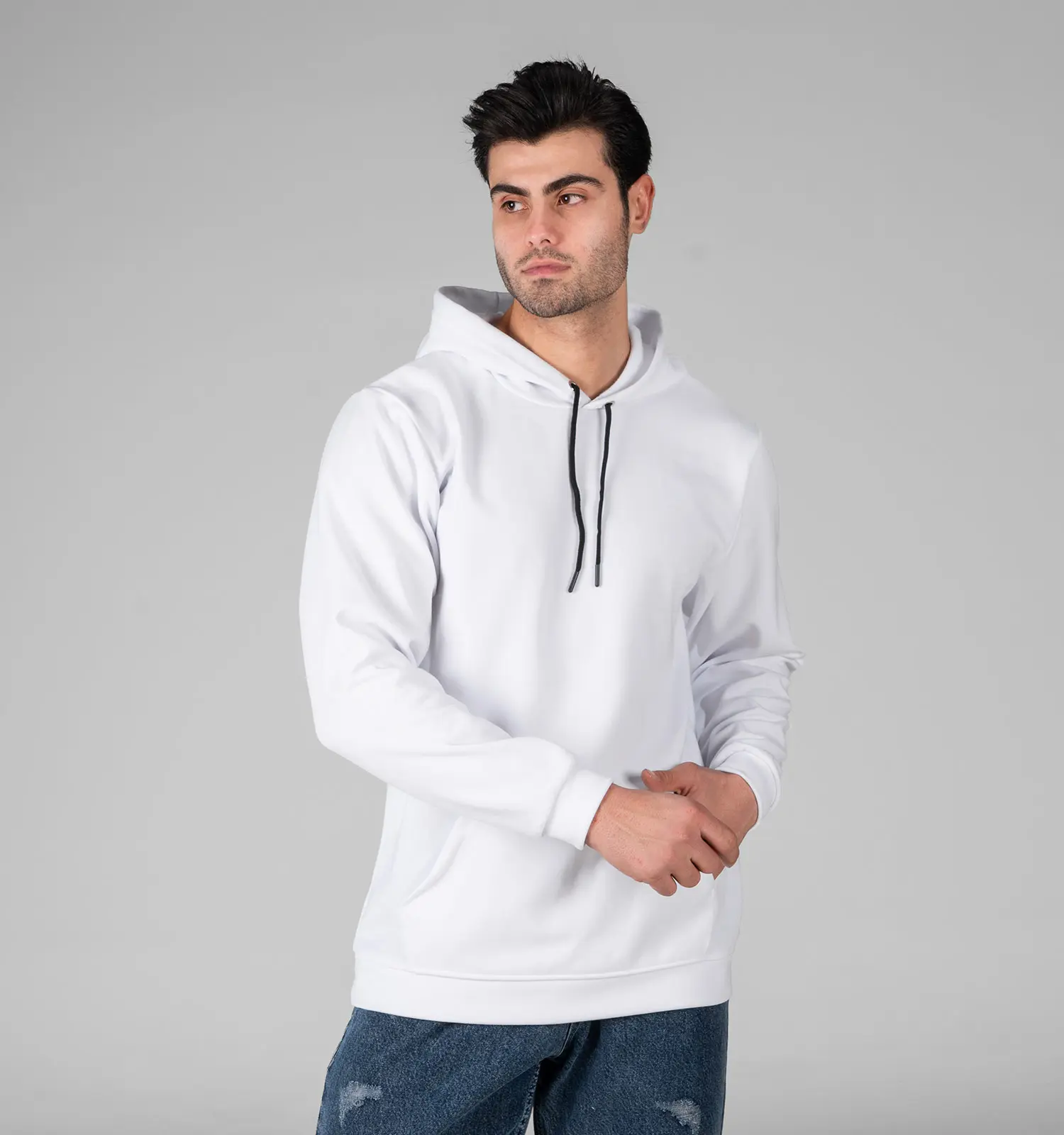 49020 هودی مردانه کلاه دار سفید ساده