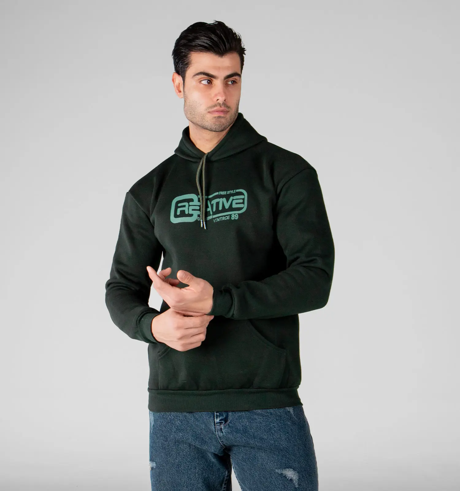 49085 هودی مردانه کلاه دار طرح دار