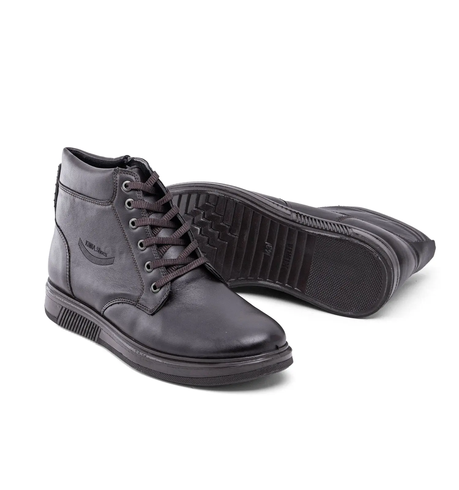 49093 نیم بوت چرم مصنوعی مردانه قهوه ای بنددار