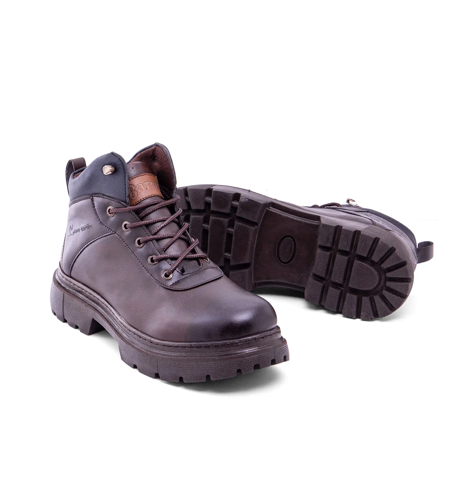 49103 نیم بوت چرم مصنوعی مردانه قهوه ای بنددار
