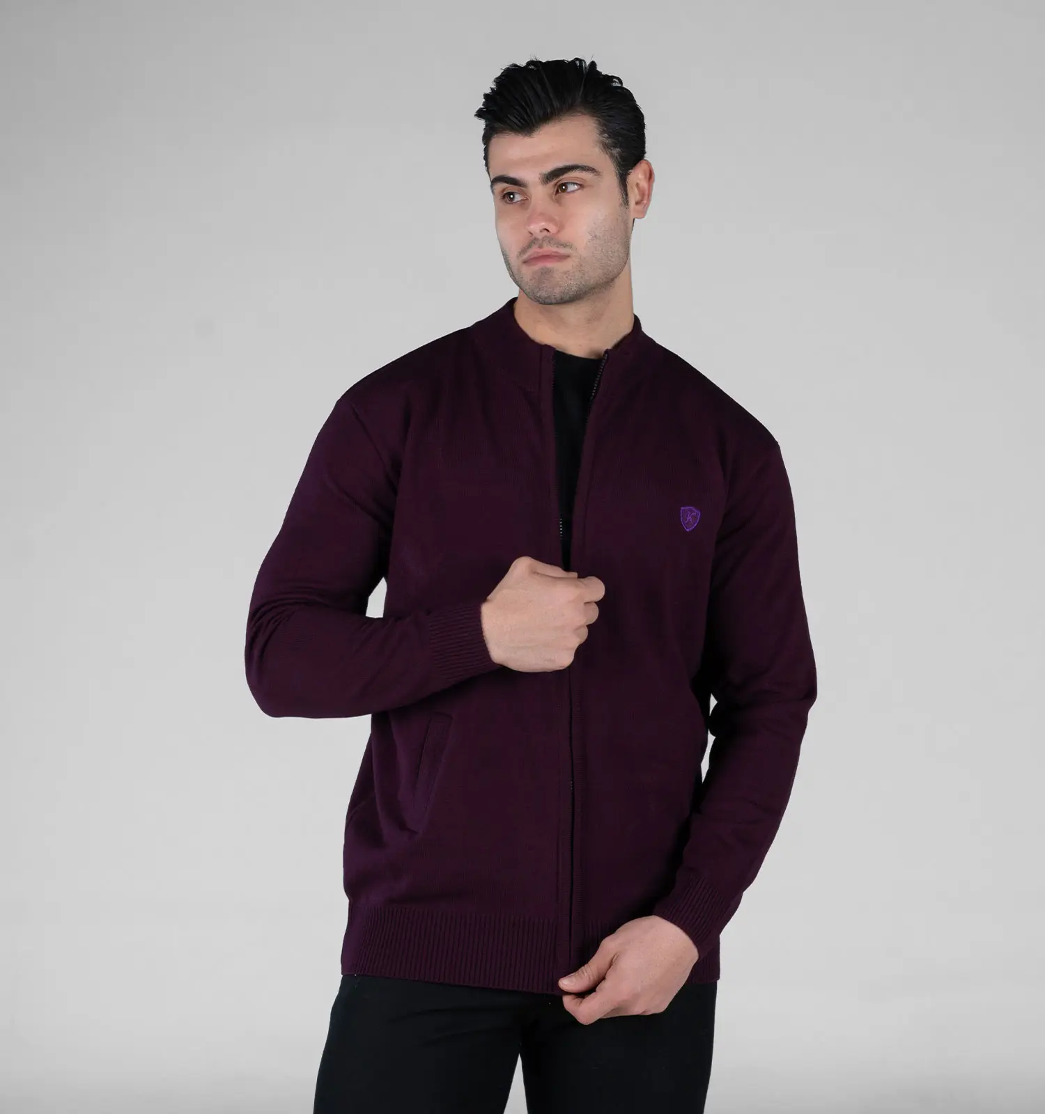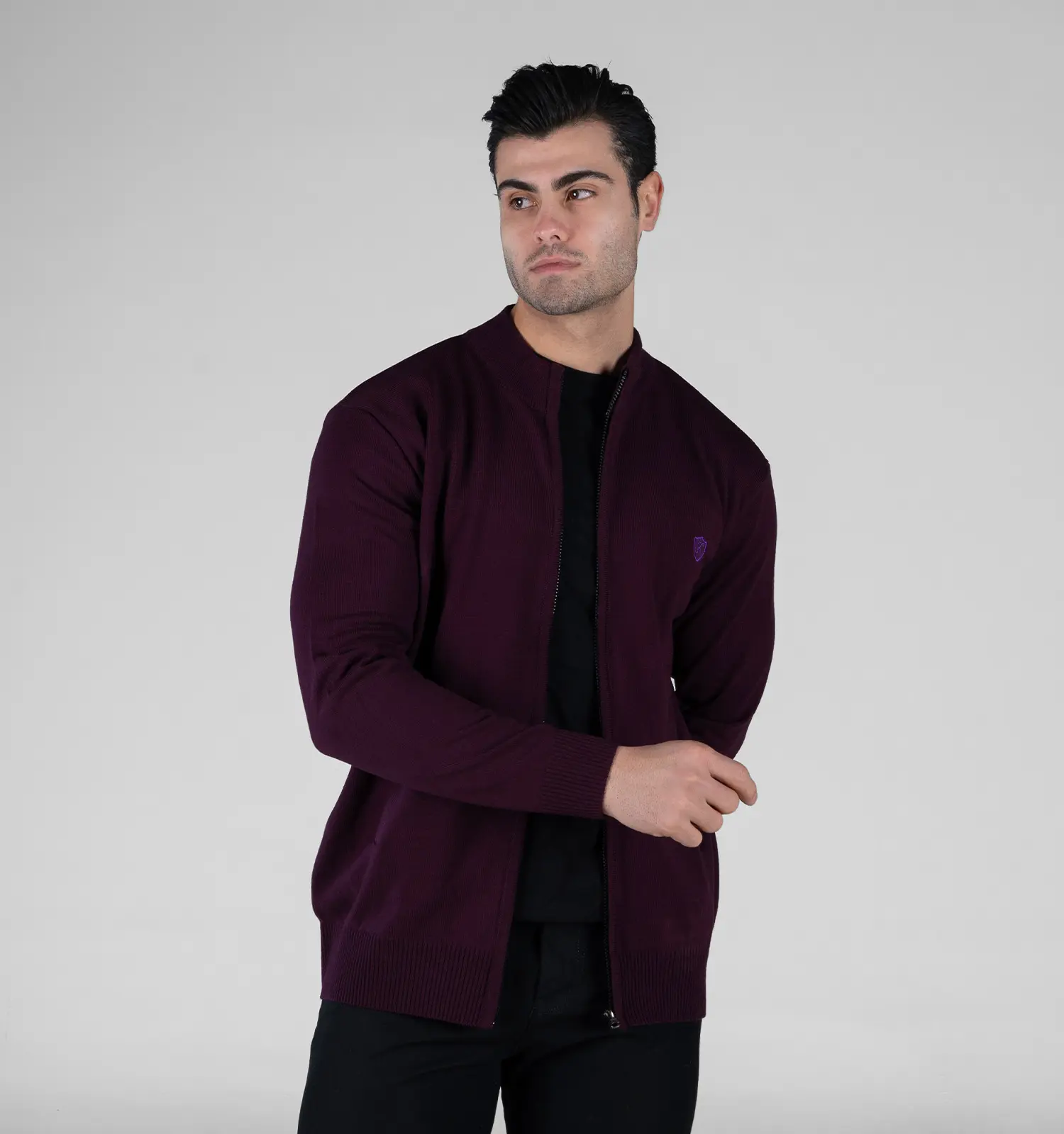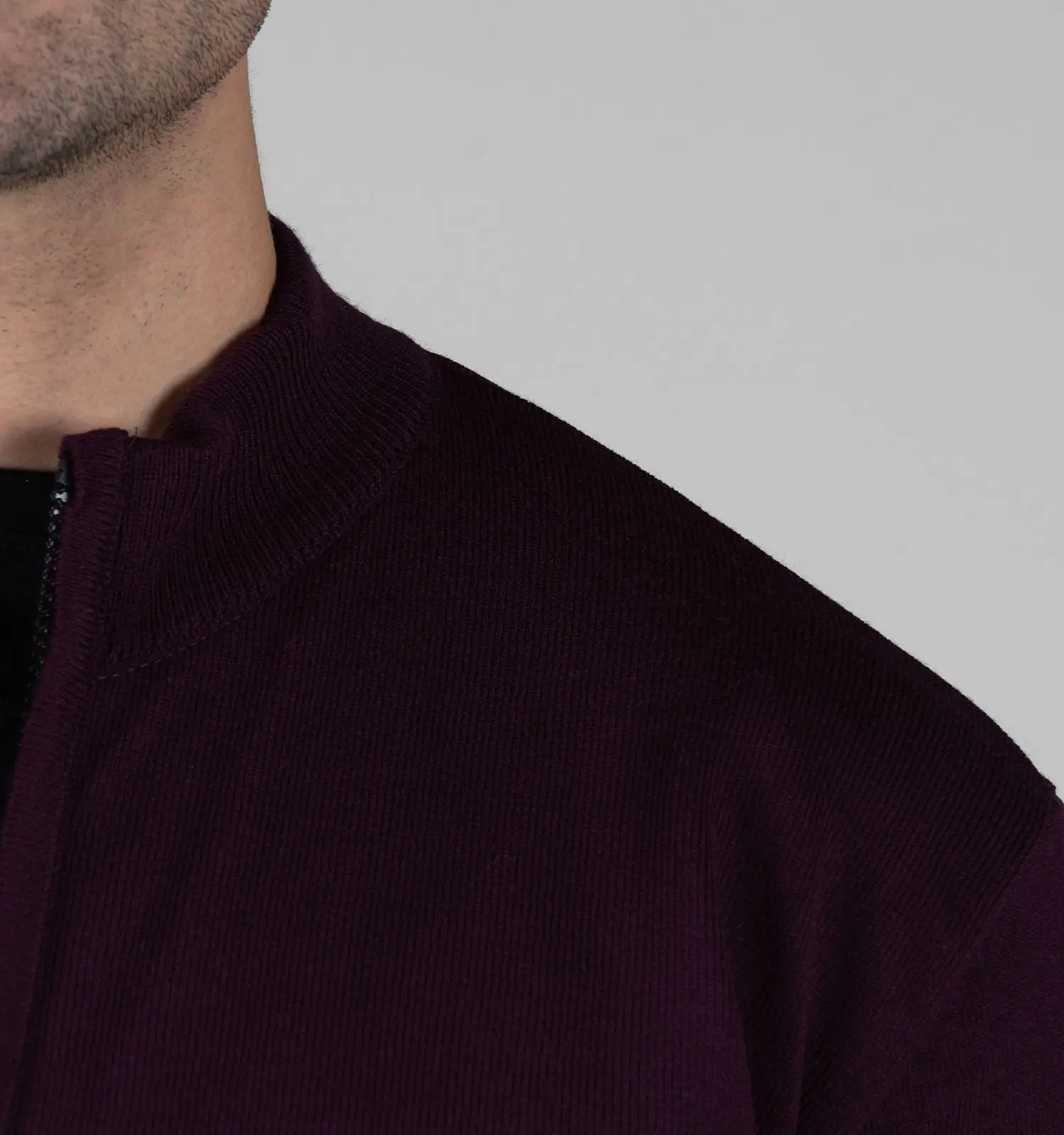 49127 ژاکت بافت مردانه زیپ دار یقه ایستاده ساده