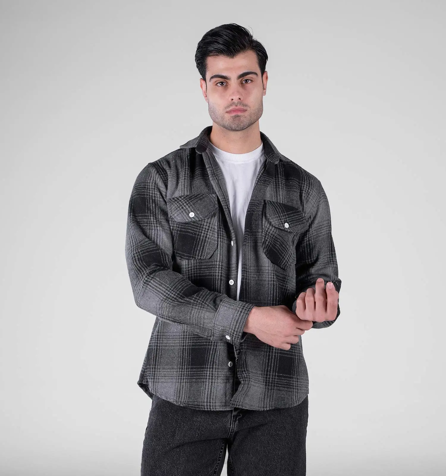 49152پیراهن اسپرت پشمی مردانه آستین بلند چهارخانه