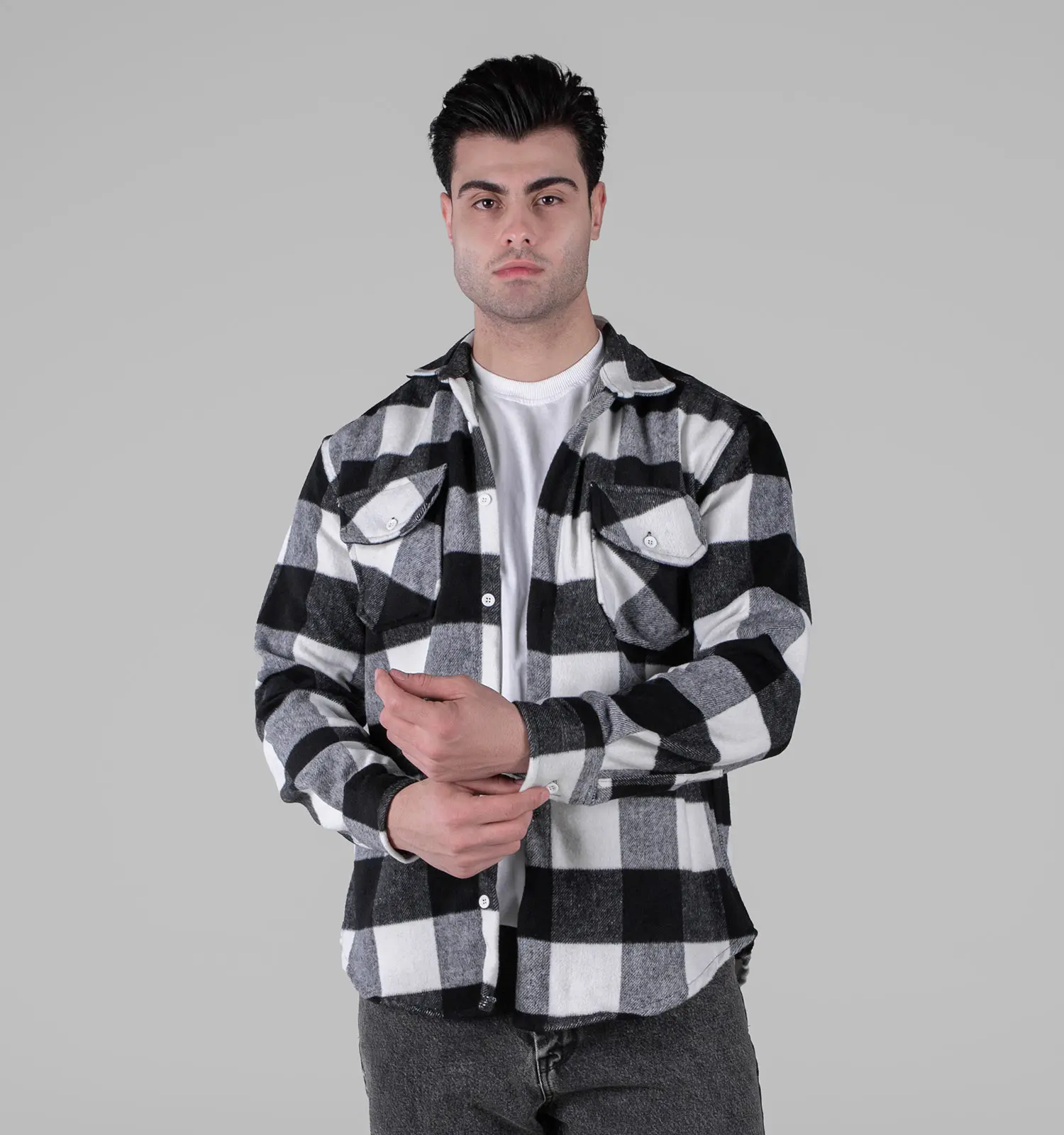 49154پیراهن اسپرت پشمی مردانه آستین بلند چهارخانه