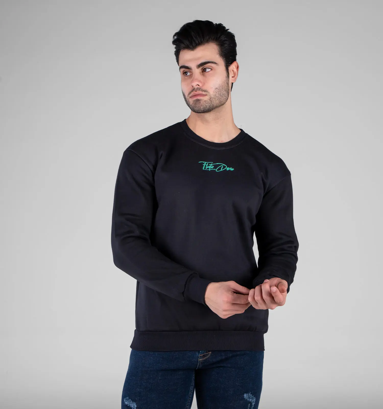 49194بلوز دورس مردانه یقه گرد طوسی طرح دار