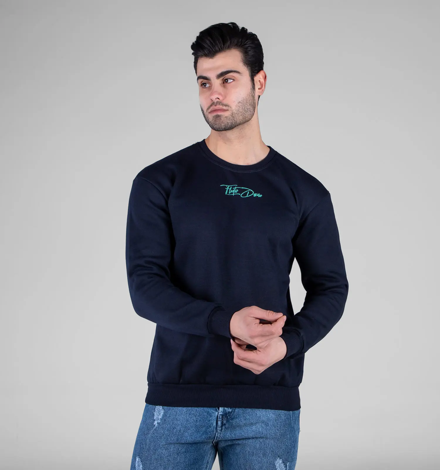 49195بلوز دورس مردانه یقه گرد سرمه ای طرح دار