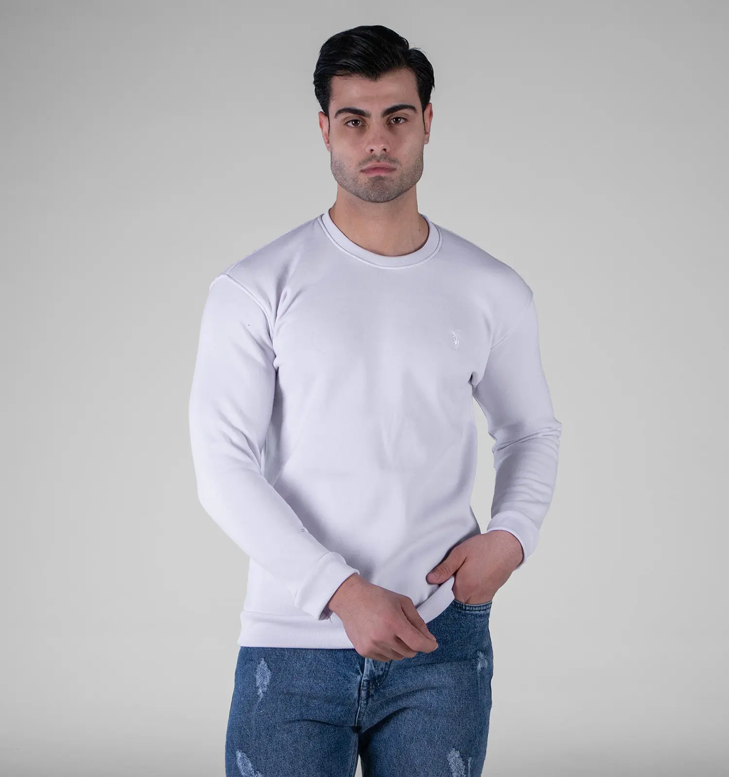 49201بلوز دورس مردانه یقه گرد سفید ساده Polo