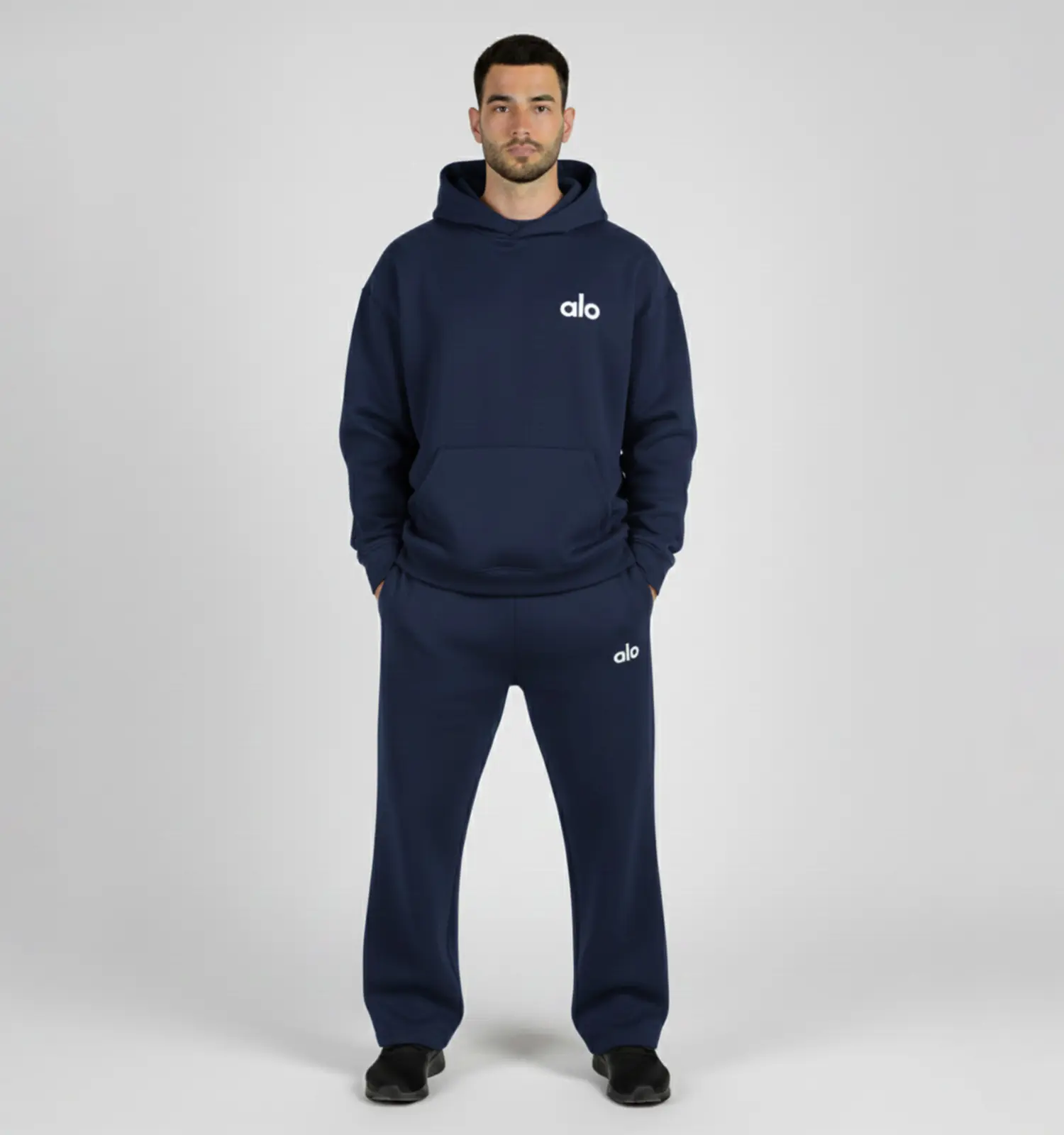 49223ست مردانه هودی و شلوار Alo سرمه ای ساده