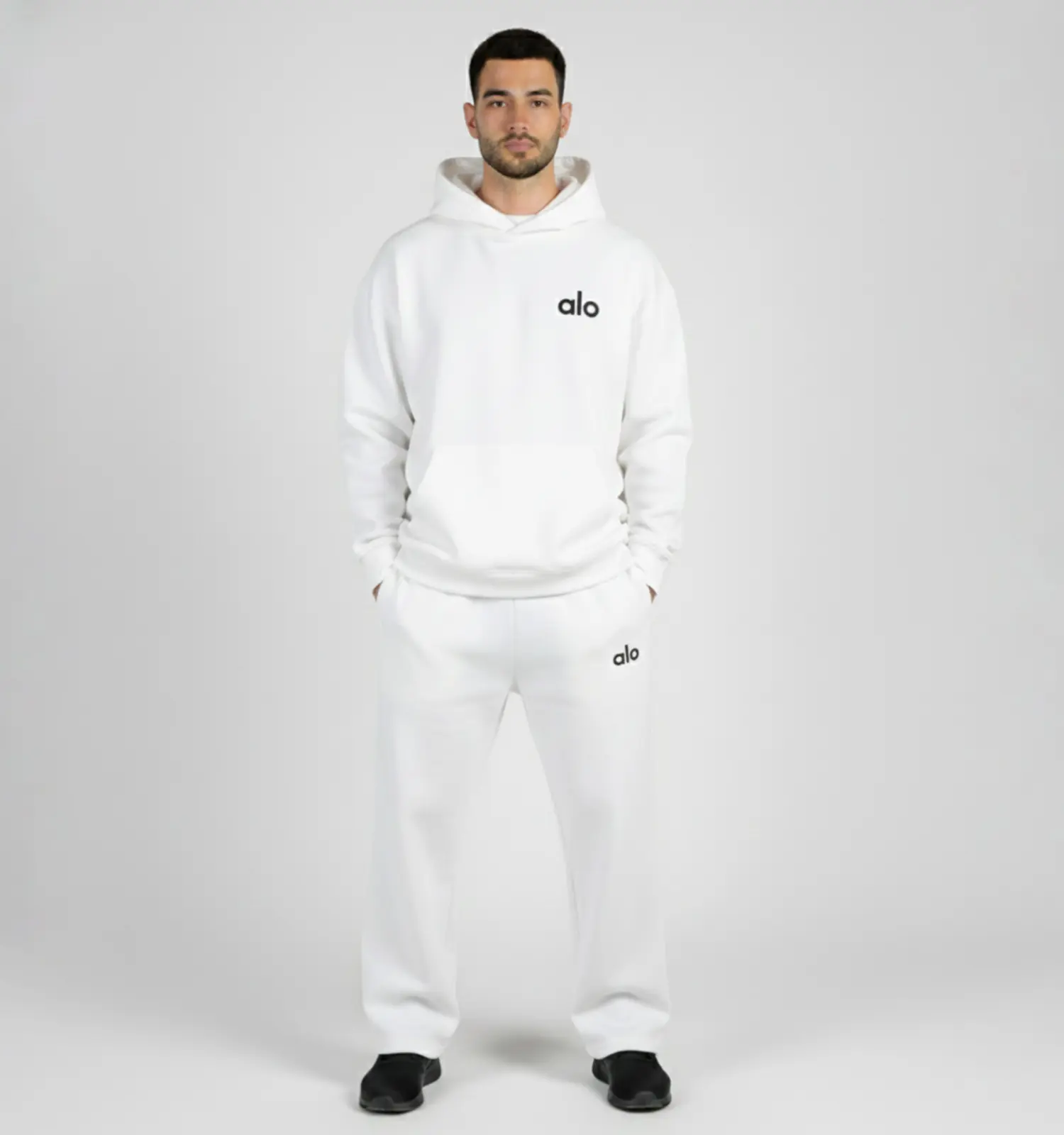 49225ست مردانه هودی و شلوار Alo سفید ساده