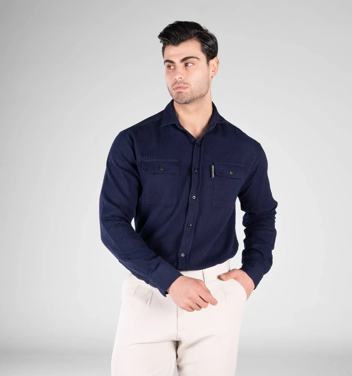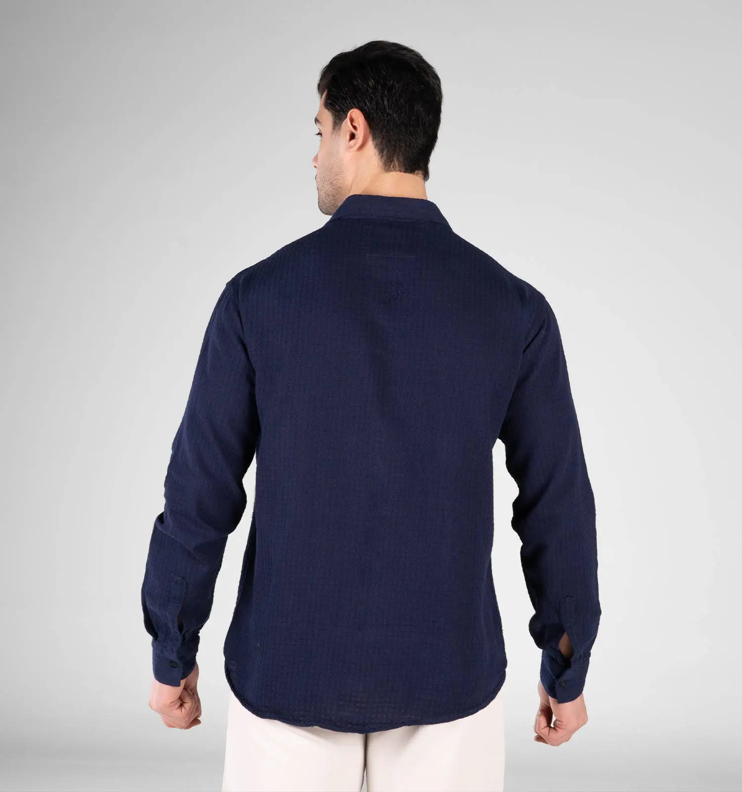 49259پیراهن مردانه آستین بلند سرمه ای ساده
