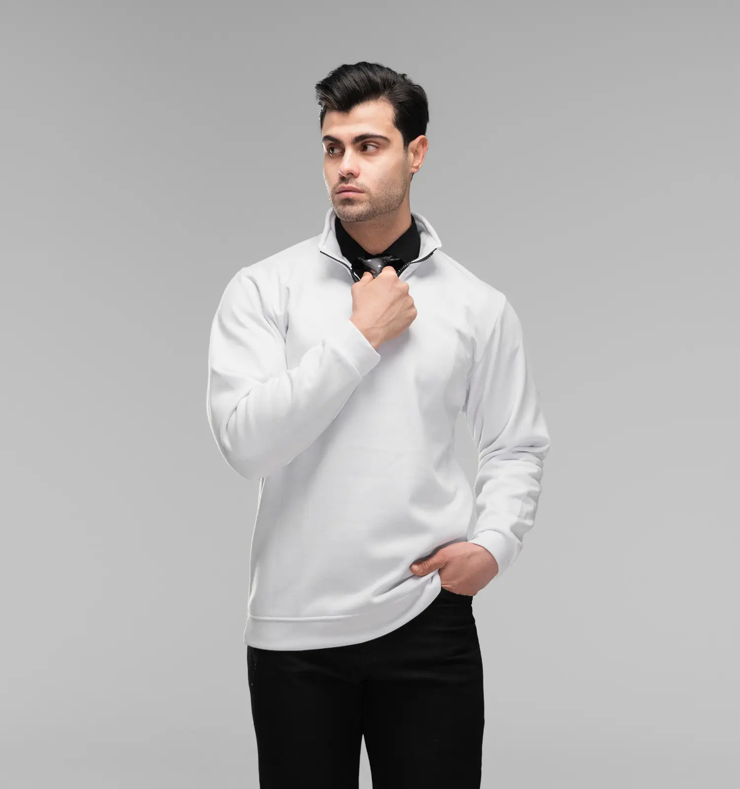 49261بلوز دورس نیم زیپ مردانه سفید ساده