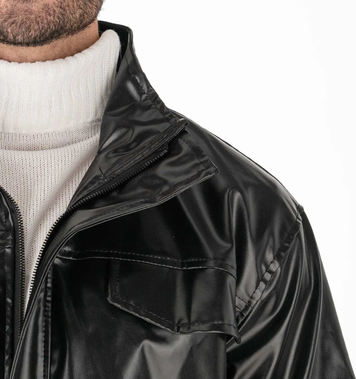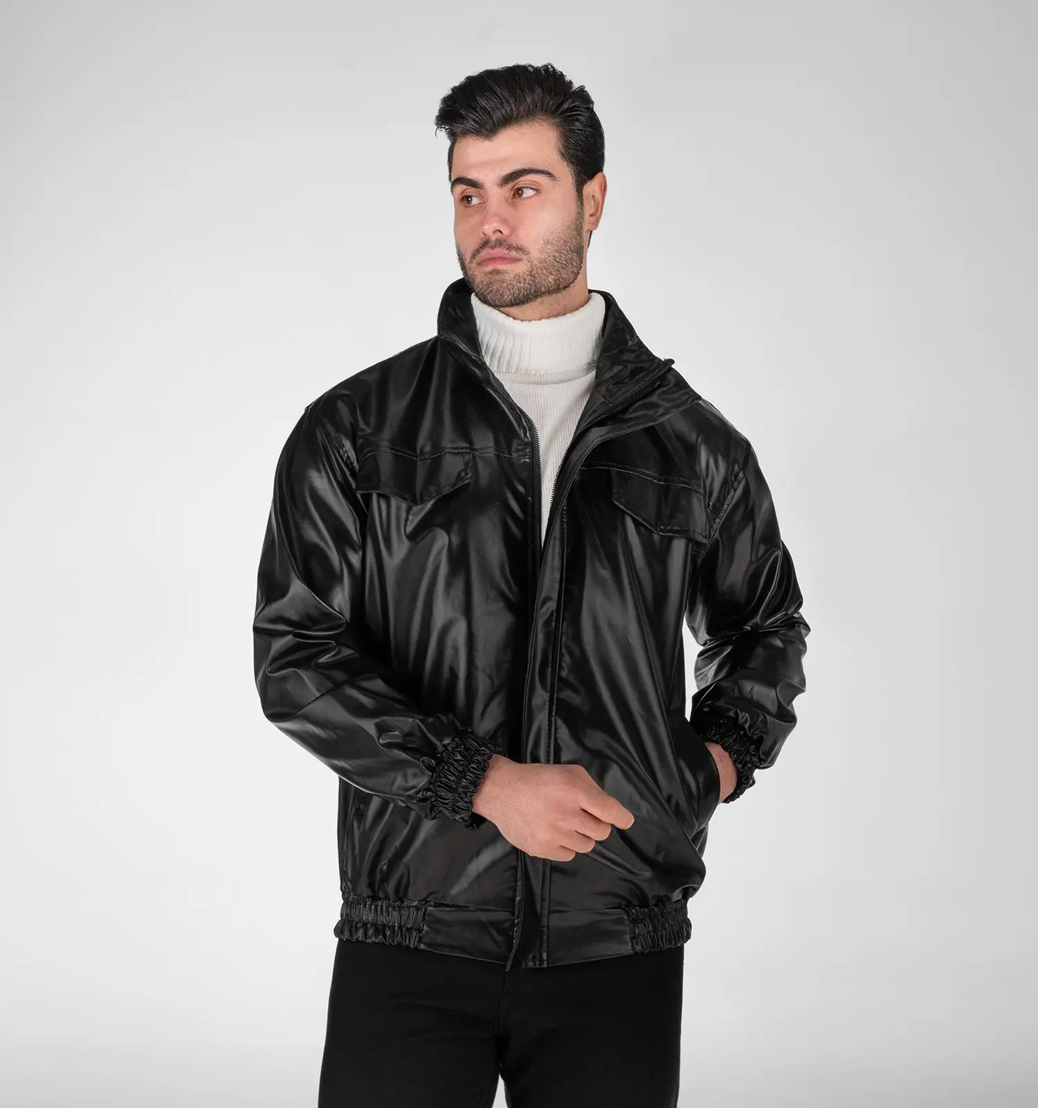 49295 کاپشن اسپرت چرم مصنوعی مردانه مشکی