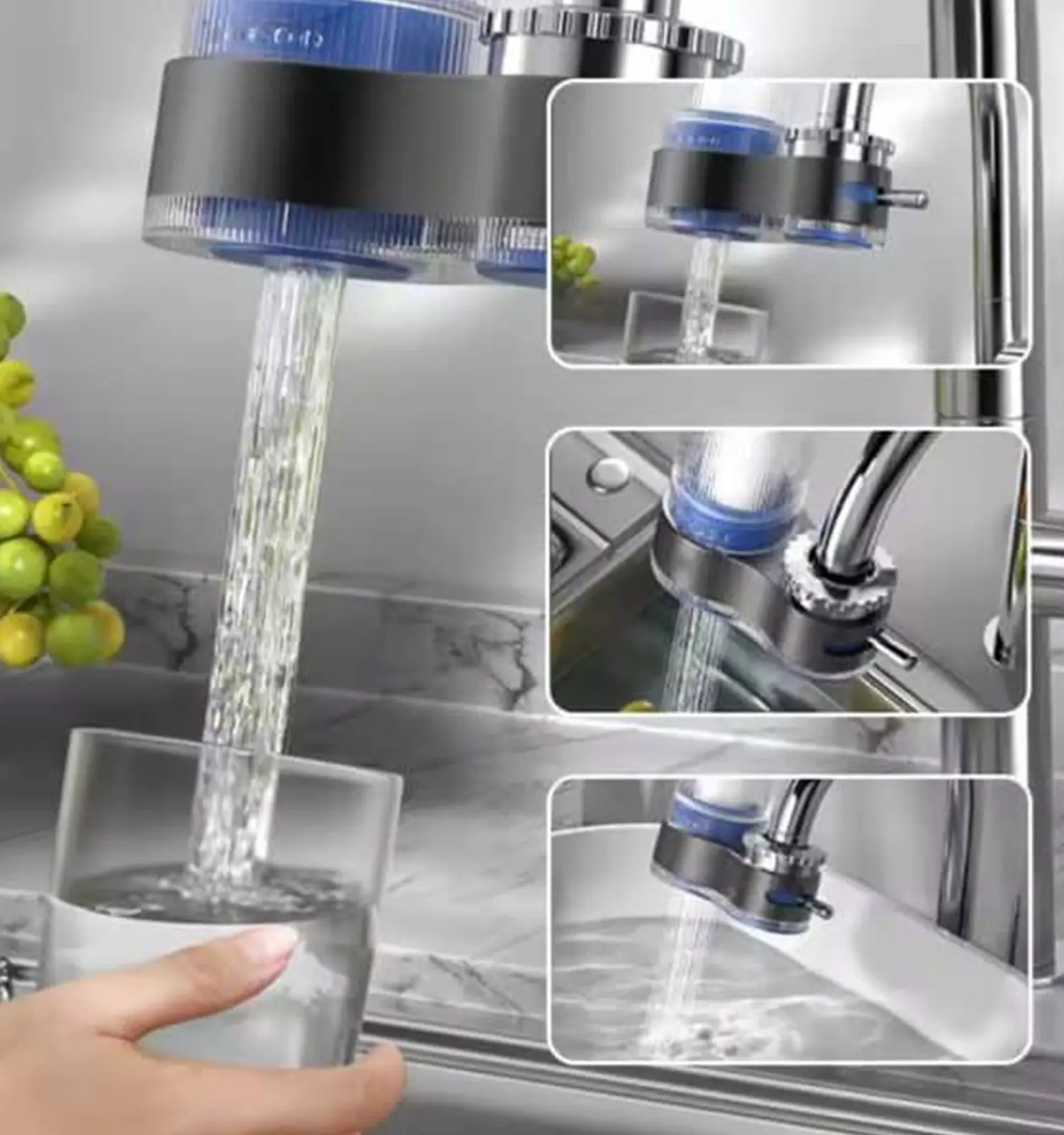 قابلیت نصب روی شیر آب گرد استاندارد