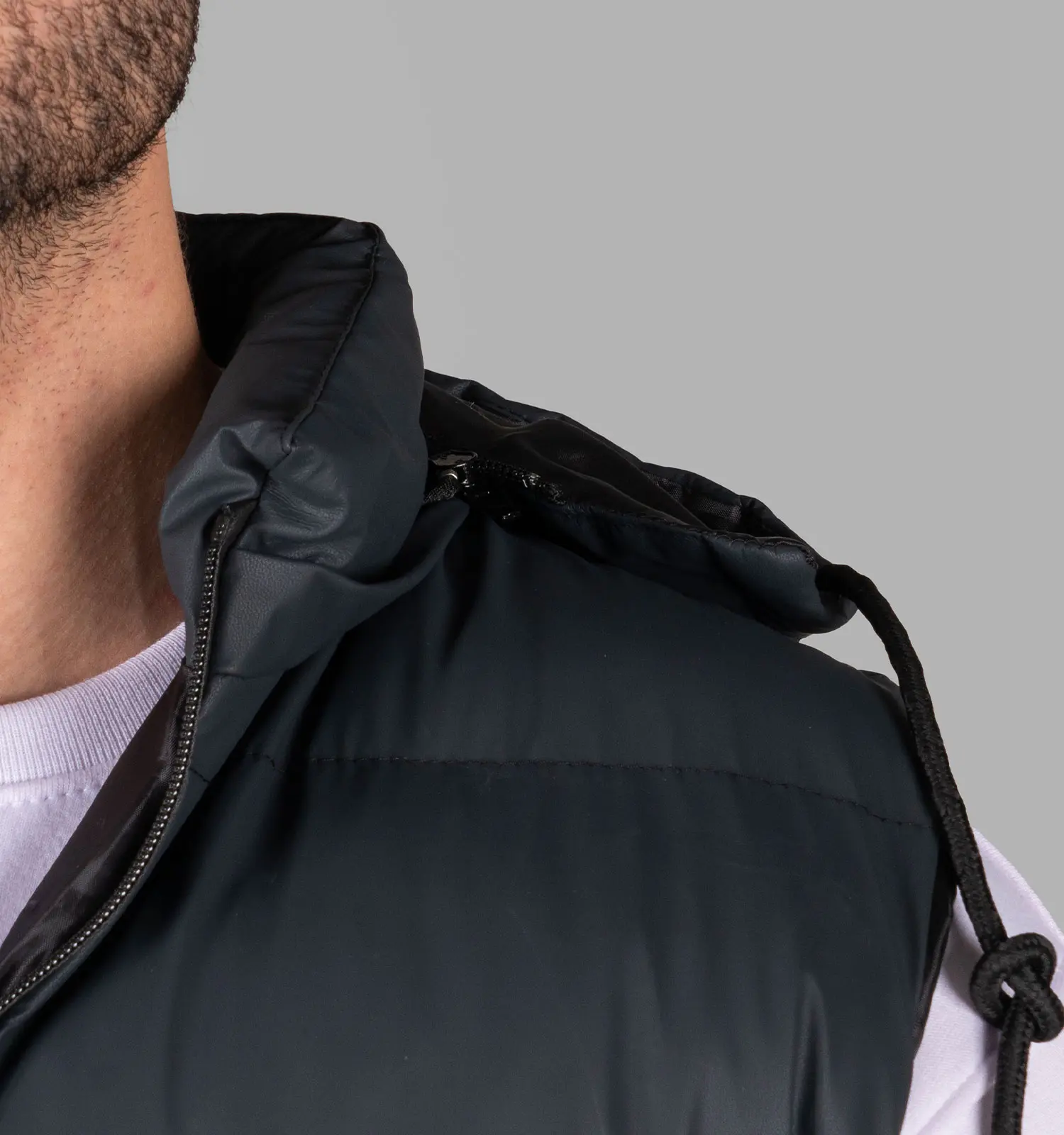 49326کاپشن پافر بادی سرمه ای کلاه دار