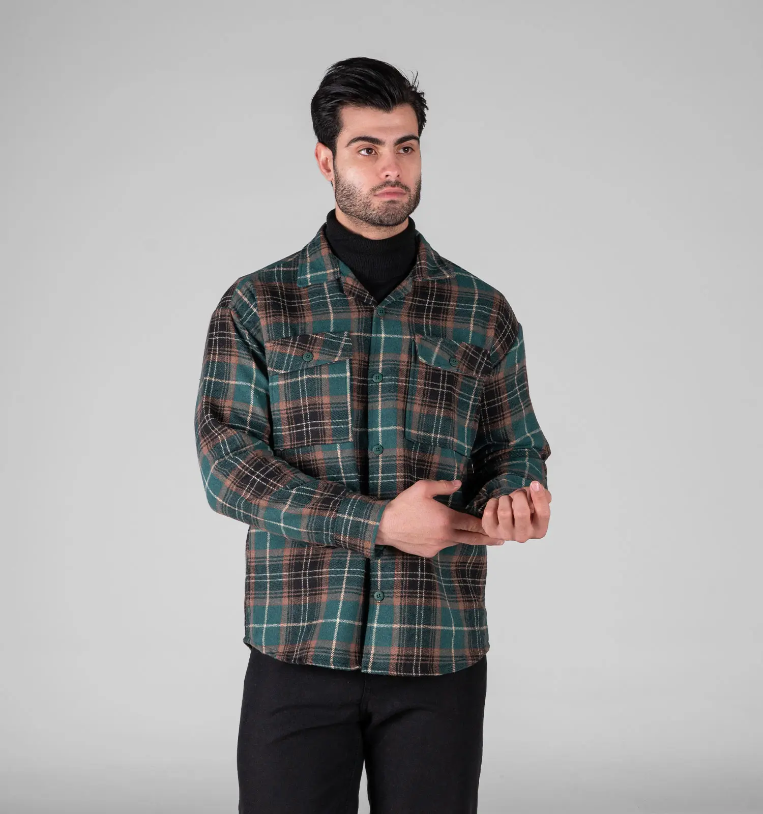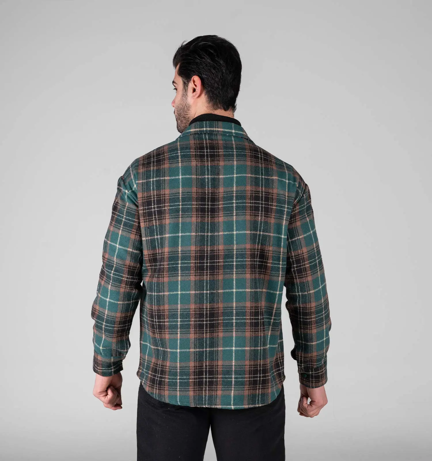 49338پیراهن اسپرت پشمی مردانه آستین بلند چهارخانه