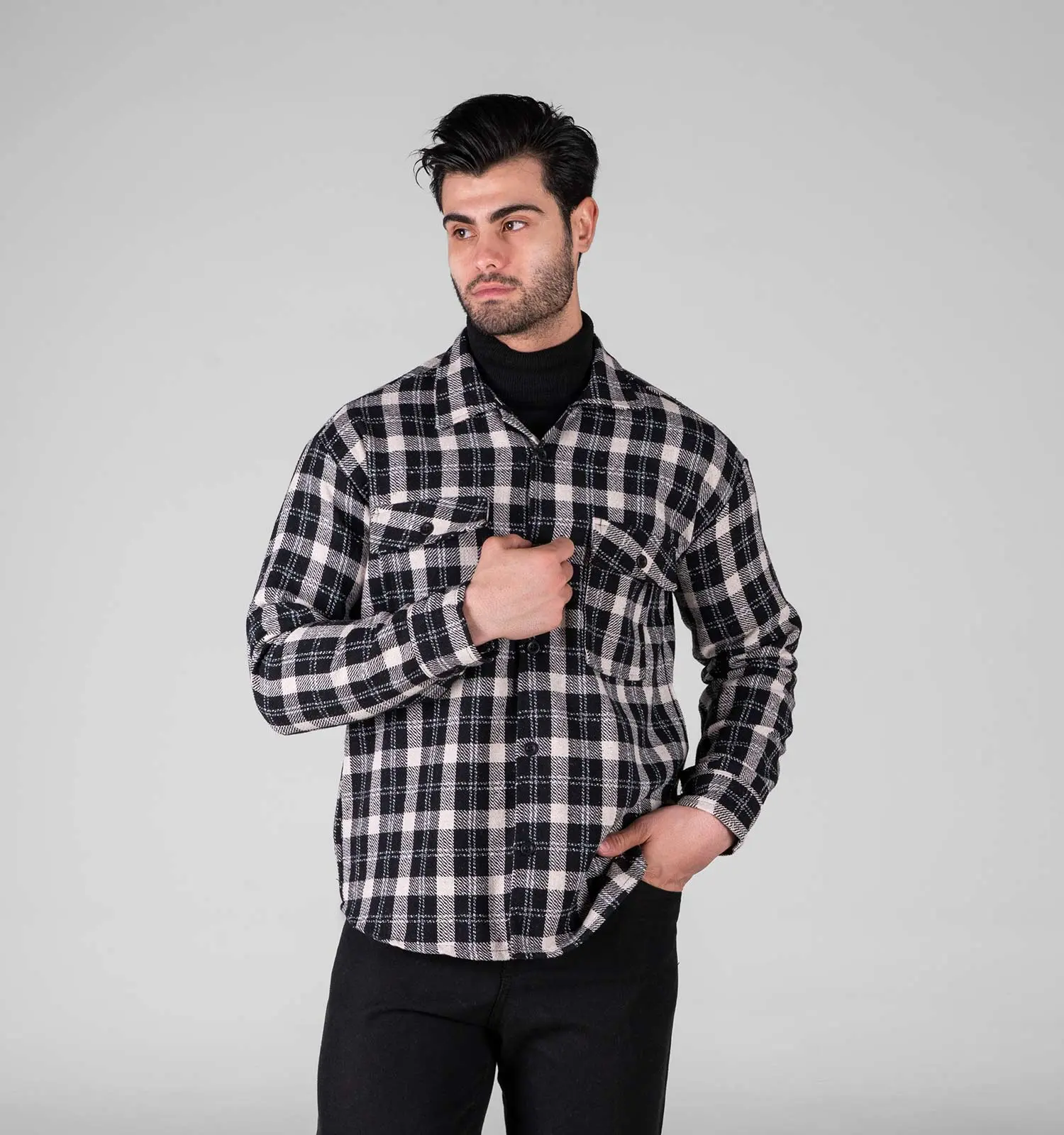 49340پیراهن اسپرت پشمی مردانه آستین بلند چهارخانه