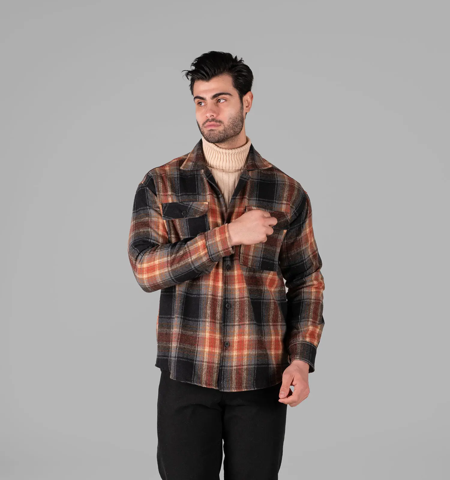 49341پیراهن اسپرت پشمی مردانه آستین بلند چهارخانه