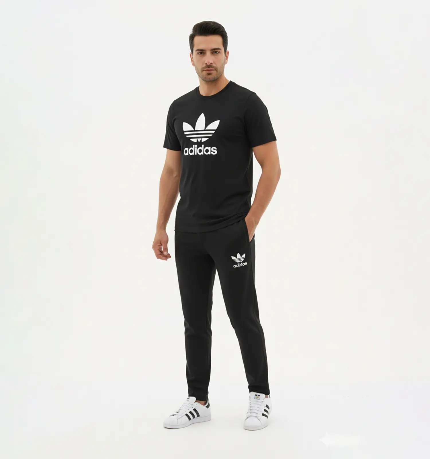 49365ست مردانه تیشرت و شلوار Adidas مشکی طرح دار