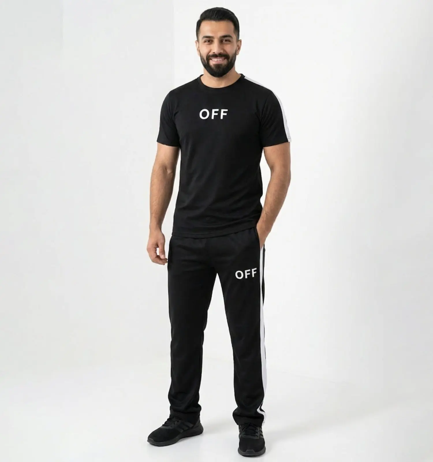 49367ست مردانه تیشرت و شلوار مشکی طرح دار