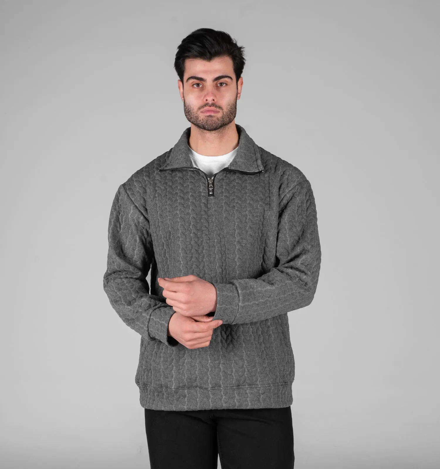 49396بلوز نیم زیپ مردانه طوسی طرح دار