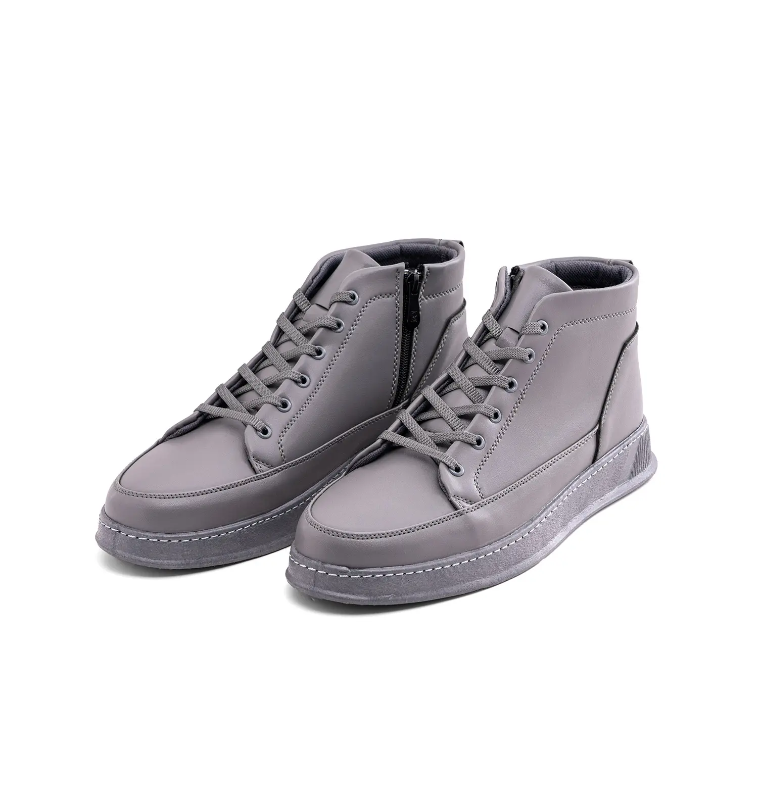 49395نیم بوت چرم مصنوعی مردانه طوسی زیپ دار